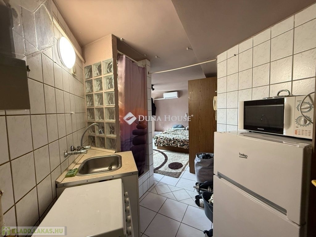 Eladó garzonlakás Budapest XIII. kerületében .Ingatlan jellemzői: A XIII. kerület szívében, Újlipótvárosban, eladó egy 20 m²-es, felújítandó garzonlakás a téglaépítésű társasház 6. emeletén (zárószint). A lift az 5. emeletig közlekedik.A lakás belső udvarra néz, csendes, komfortos besorolású, jelenleg a WC a folyosón található, de ez a jövőben igény szerint a lakáson belül is kialakítható.Extrák:Új, hőszigetelt műanyag nyílászárókÚj biztonsági bejárati ajtóGázkonvektoros fűtés és hűtő-fűtő klímaA tetőtéri szint 1993-ban ráépítéssel készültA lakás lakható állapotú, de felújítást igényelBővítési lehetőség értéknövelő beruházás a belváros szívében!Igény esetén, saját költségen, tovább bővíthető a lakás: a közvetlenül mellette található tetőtér-rész a lakóközösséggel való egyeztetés után megvásárolható és beépíthető, amivel további kb. 10-15 m² nyerhető ideális lehet konyha-étkező kialakítására, valamint a WC is a lakáson belülre kerülhet.Ez a lehetőség jelentős értéknövekedést jelenthet, különösen egy ilyen keresett környéken!(A bővítés költségéről pontos információ jelenleg nem áll rendelkezésre.)Elhelyezkedés, infrastruktúra:A környék kiváló közlekedési és szolgáltatási adottságokkal rendelkezik:M3 metró, 4-6-os villamos, busz- és trolijáratokWestend City Center, Lehel piac, Duna-part, Nyugati pályaudvar, MargitszigetÉttermek, kávézók, boltok, szolgáltatások minden iránybanAjánljuk mindazoknak:akik első lakást keresnek Budapest belvárosábanakik befektetési céllal vásárolnának (könnyen kiadható)akik egyedi kialakítású, saját ízlésre formálható ingatlant keresnekTovábbi információért és megtekintésért forduljon hozzám bizalommal!A Duna House teljes kínálatával kapcsolatban is tudok segíteni. Ingyenes hiteltanácsadás, ügyvédi háttér, belső tervező és kivitelező partner is rendelkezésre áll.