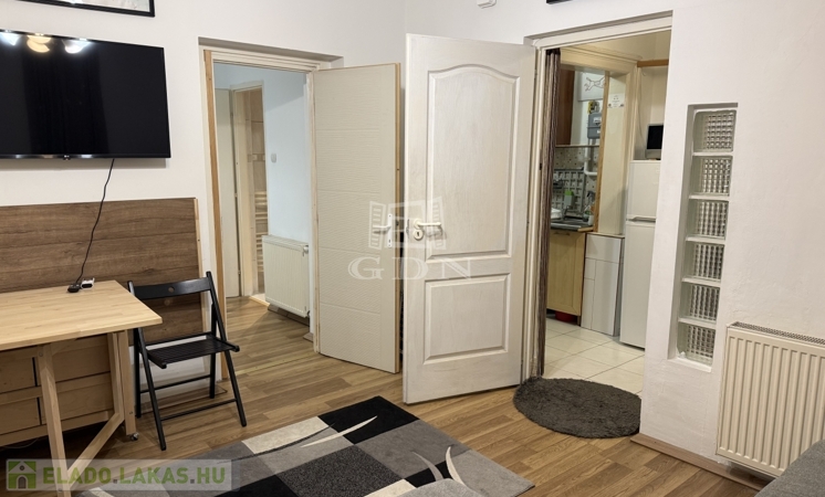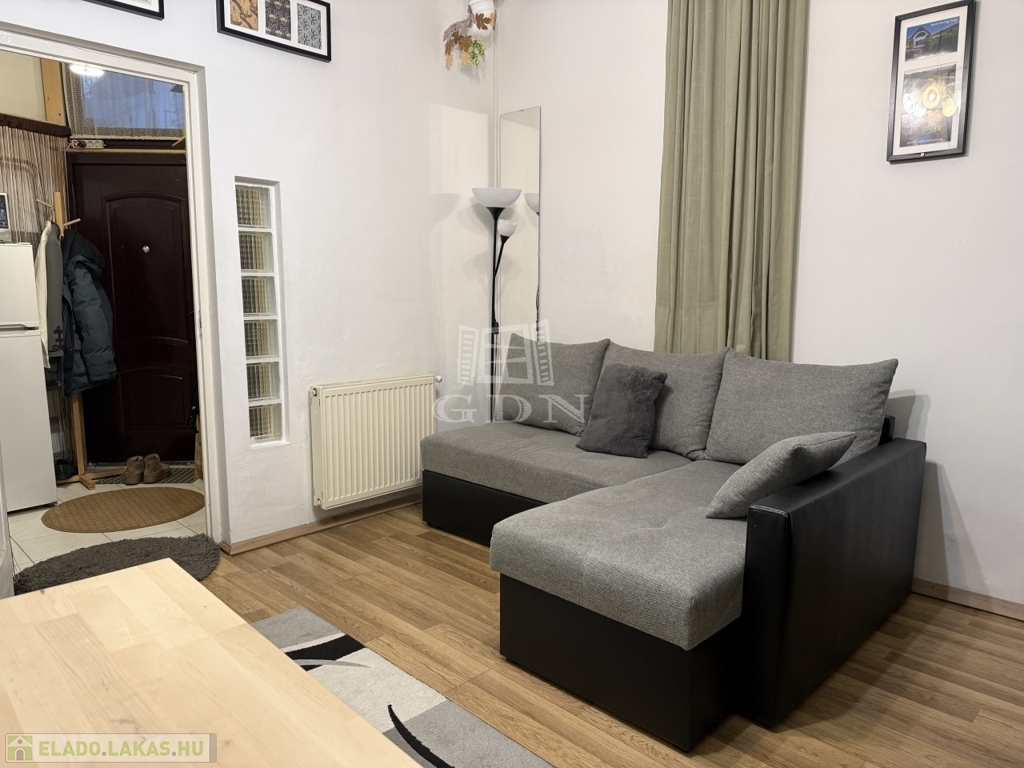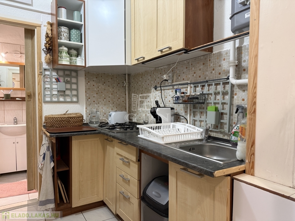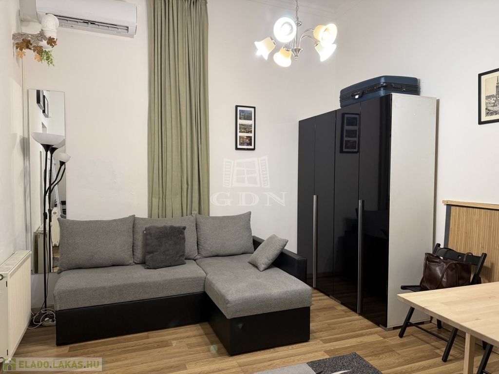 A lakás folyamatosan karbantartott, azonnal költözhető, teljes berendezéssel és gépesítéssel együtt eladó. A tulajdoni lap szerint 23 nm, a valós alapterület 33 nm. A hálószoba a korábbi lichthofból lett kialakítva, ablakos, jól használható külön szoba.