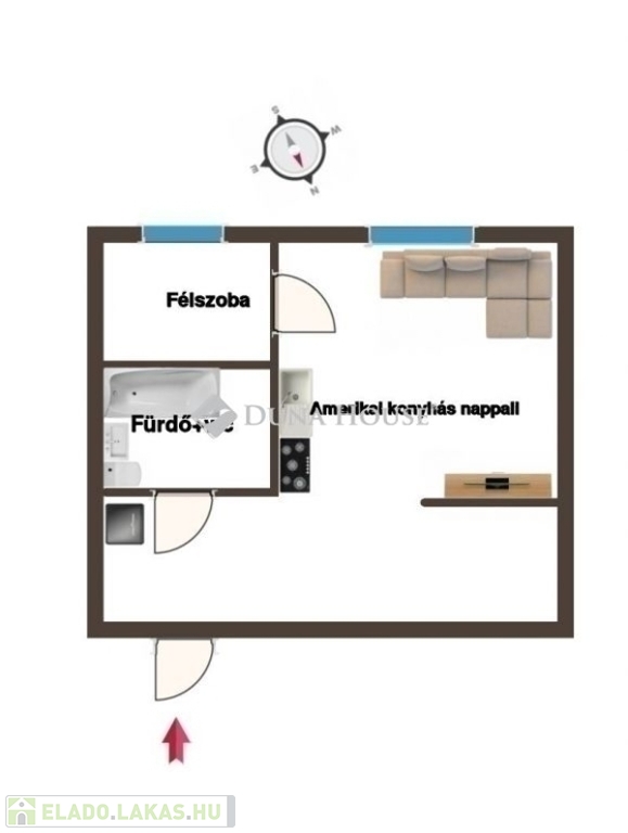 A hálófülke külön ajtóval leválasztott, csendes és intim pihenőrészt kínál. A lakásban amerikai stílusú, gépesített konyha, modern fürdőszoba, valamint redőnyökkel felszerelt ablakok találhatók. A korszerű klímaberendezés és az extra hő- és hangszigetelés garantálja a komfortot minden évszakban.