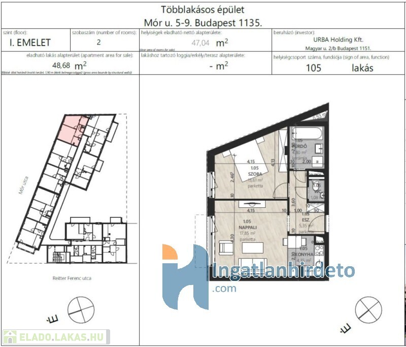 (a másik lakás 47 m2-es, erkély nélküli, I. emeleti és 70,5 M Ft-ba kerül)