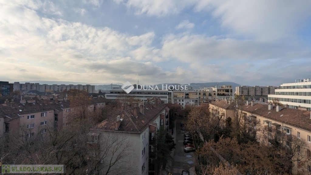 Eladó egy 60 négyzetméteres, tehermentes, hatodik emeleti, felújítandó lakás panoráma kilátással, liftes házban a 13. kerület Vizafogó városrészében, a Váci úton. A lakás a társasház legfelső emeletén található, ennek köszönhetően világos. Az erkélyes szoba a Váci útra néz, a szembe lévő szoba pedig a Budai hegyekre. A lakásba belépve az előszobából nyílik rögtön baloldalon a WC, majd rögtön utána a konyha helyezkedik el, melyhez kis kamra is tartozik. A konyhában a meleg vizet eddig villanybojler szolgáltatta. Az előszobában tovább menve baloldalon került kialakításra egy gardrób szekrény. Az előszobából jobbra a fürdőszobába léphetünk, egyenesen pedig az egyik szobát érhetjük el. A fürdőszobában fel van szerelve egy modern villanybojler, ez szolgáltatja a meleg vizet a fürdőben. A fürdőszobából másik oldalán kilépve eljuthatunk az erkélyes szobába. Az erkélyről látszik a Gellért-hegy és a Szabadság-szobor. Az erkélyes szobában egy Gree klíma került felszerelésre. A lakásban az összes ablak modern, műanyag ablakra lett cserélve szúnyoghálóval. A közös költség 23.000 Ft, mely tartalmazza a vízfogyasztást. A központi fűtés költsége kb. 12.000 Ft, valamint tartozik a gázóra is a villanyóra mellett. A központi fűtéshez hozzá lehet tenni a víz felmelegítés költségét, így a víz felmelegítést is a FŐTÁV tudja biztosítani.
