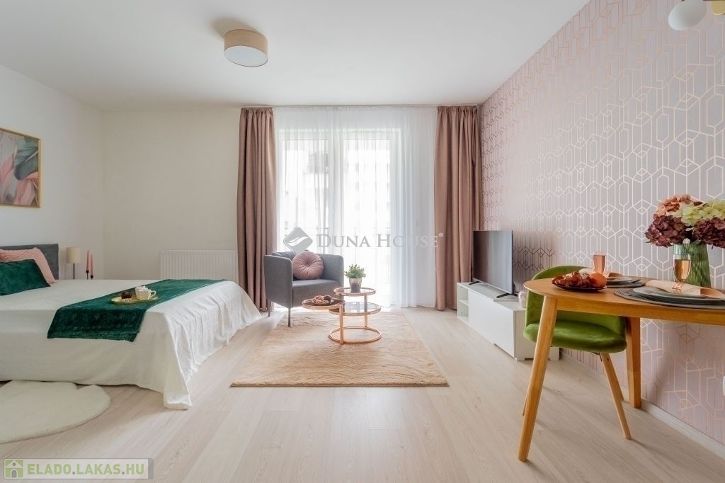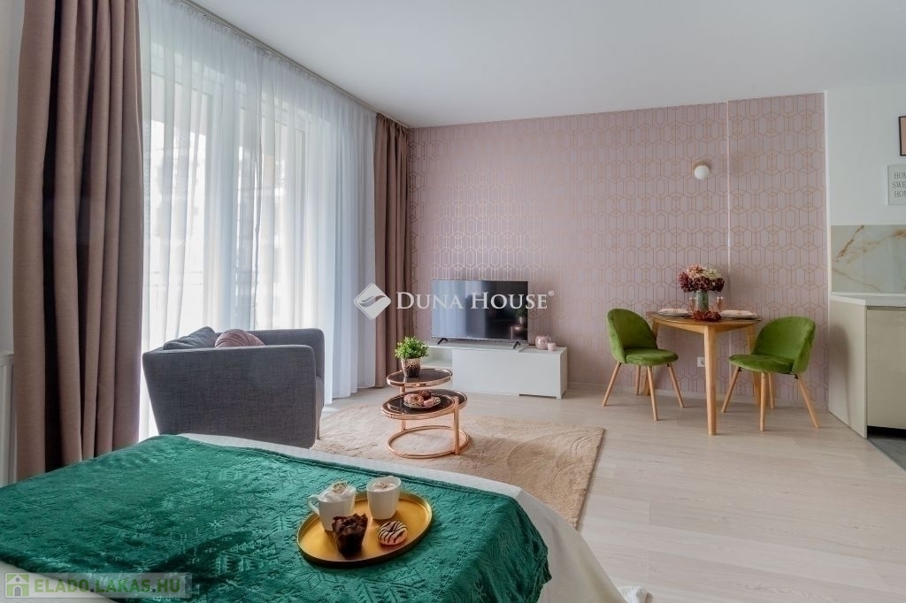 Eladó 35nm+6nm erkélyes lakás a XIII. kerületben, 2023-ban épült társasházban. Az ingatlan első emeleti, kertes udvarra néz, nem utcára. Fűtése házközponti fűtés egyedi méréssel. A közös költség 16.548FtA fotókon látható bútorokat kötelező megvásárolni, melyeknek ára a vételáron felül +1millió Ft.Tároló , garázs nem tartozik hozzá. Nagyszerű lehetőség! A belváros pillanatok alatt elérhető. További információért, megtekintéssel kapcsolatban keressen elérhetőségeim valamelyikén.