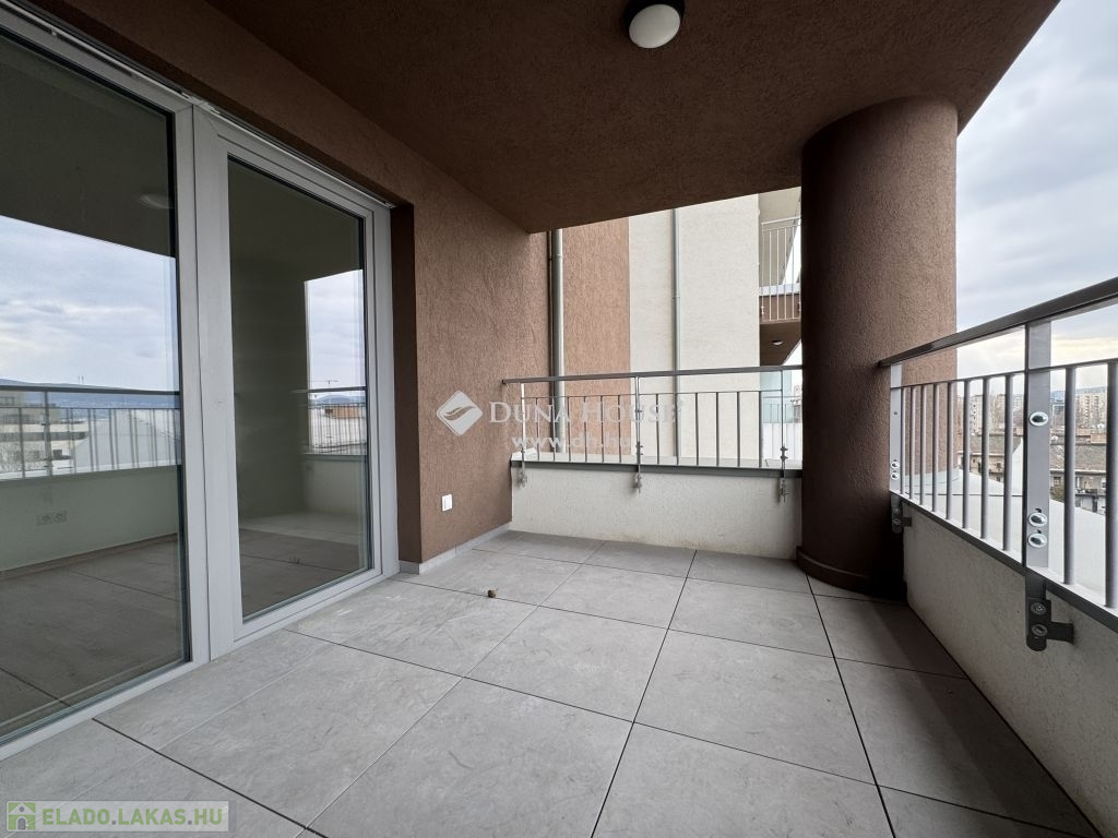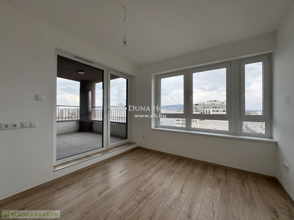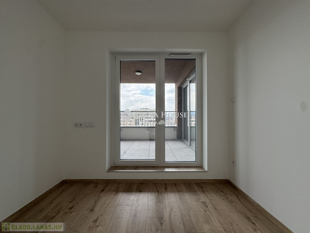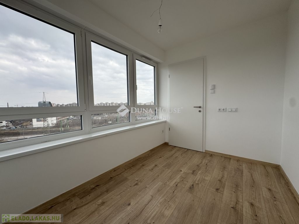 Angyalföldön!Ritka lehetőségként kínálunk eladásra A főváros egyik legnépszerűbb, gyorsan fejlődő, csendes részén, a Xlll. kerületi, közkedvelt New Palace lakóparkban, egy, újépítésű, 35 nm alapterületű, rendkívül átgondolt, jó elrendezésű, világos, terasszal rendelkező, 6. emeleti, nappali + 1 szobás, gyönyörű studio lakást.A lakás 2025 szeptemberére lesz beköltözhető. Teljeskörűen, a tervek szerint, magas minőségben megvalósítva. Az előszobából egy rövid közlekedőn érhető el az a kicsi de élhető méretű, északi irányba néző, hatalmas teraszajtónak köszönhetően, a nap legnagyobb részében szép, világos nappali, ahol helyet kapott egy kompakt konyha is. Innen nyílik a szintén északi fekvésű hálószoba is csendet és intimitást biztosítva az alváshoz. Szintén az előszobából megközelíthető egy minden komfortot kielégítő fürdőszoba is, ami Wc-vel és egy épített zuhannyal került kialakításra. A federt terasz, ami a nappaliból és a hálószobából is megközelíthető, alkalmas, grillezésre, vendégfogadásra, északi tájolásnak köszönhetően, kellemes, árnyékos, így a nyári kánikulában is rendkívül élhető. Valamennyi burkolat, prémium kategóriás. Az épületben biztonsági kamerarendszer működik. A lakás pedig távfelügyeletre alkalmas riasztórendszerrel felszerelt. A nappali és a szoba is, külön szabályozható klímarendszerrel rendelkezik. Belmagasság: 2,7 m.Az ingatlan rendkívül alacsony fenntartási költségű. Egyedi mérőórás, házközponti gázkazán, mennyezeti hűtő—fűtő rendszer gondoskodik a fűtésről és a melegvízellátásról, melynek összege rendkívül alacsony havonta, A közös költség pedig magában foglalja az összes házzal kapcsolatos egyéb költséget. A társasház rendelkezik megtakarítással, illetve, biztosítással is, a közös képviselet gondosan kezeli a ház ügyeit.A Lakópark elhelyezkedése kiváló, autóval a Váci útnak köszönhetően, bárhová gyorsan el lehet jutni, de tömegközlekedéssel is jól megközelíthető, sétatávolságra 3-as Metro Gyöngyösi utcai megállója, buszmegállók, illetve az Újpest vasútállomás. Valamint, néhány perces sétatávolságra található Duna Plaza bevásárlóközpontnak, Aldinak, Sparnak, Lidl-nek, valamint a Népsziget és a gyöngyösi sétány és újpest központjának közelsége miatt biztosított számos bevásárlási, kikapcsolódási és sportolási lehetőség. A körzetes óvoda és általános iskola szintén 10 perces sétával elérhető.Az ingatlan, új építésű, állapotát tekintve, teljesen, kifogástalan állapotú, nyár végén költözhető. Kialakítása és a lakópark által biztosított csendes, kellemes környezete miatt kitűnő választás otthonnak de akár, értékálló befektetésnek is.Az utcában, ingyenes a parkolás. Illetve a lakáshoz opcionálisan vásárolható, teremgarázs beálló épületen belül a pinceszinten.