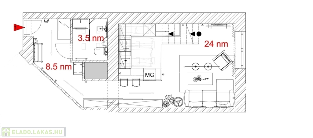 • 1. emelet, galériás kialakítás
