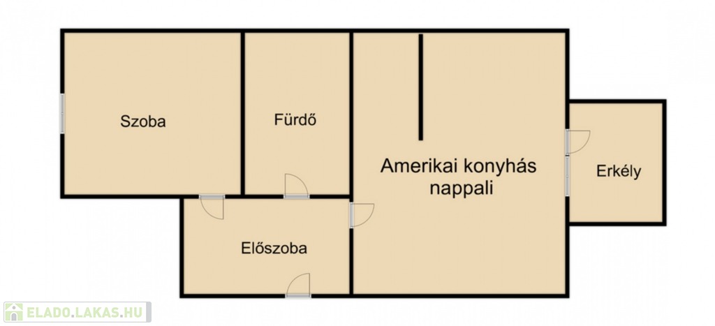 A nappali É-i tájolású míg a háló D-i tájolású.