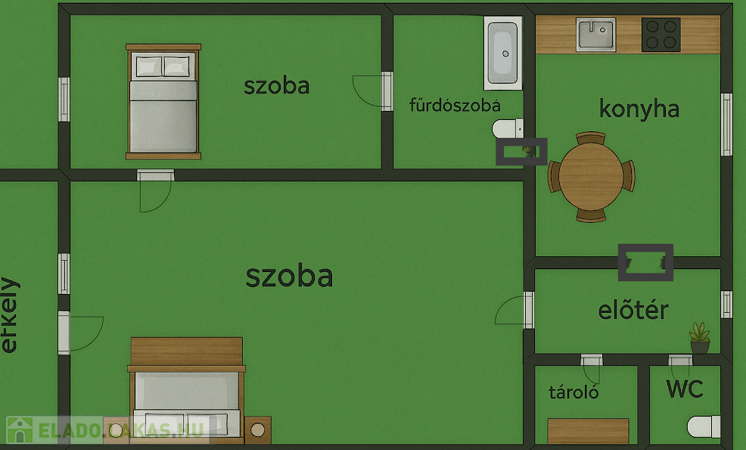 Csendes, zöldövezeti részen eladó egy igényesen felújított kétszobás lakás.