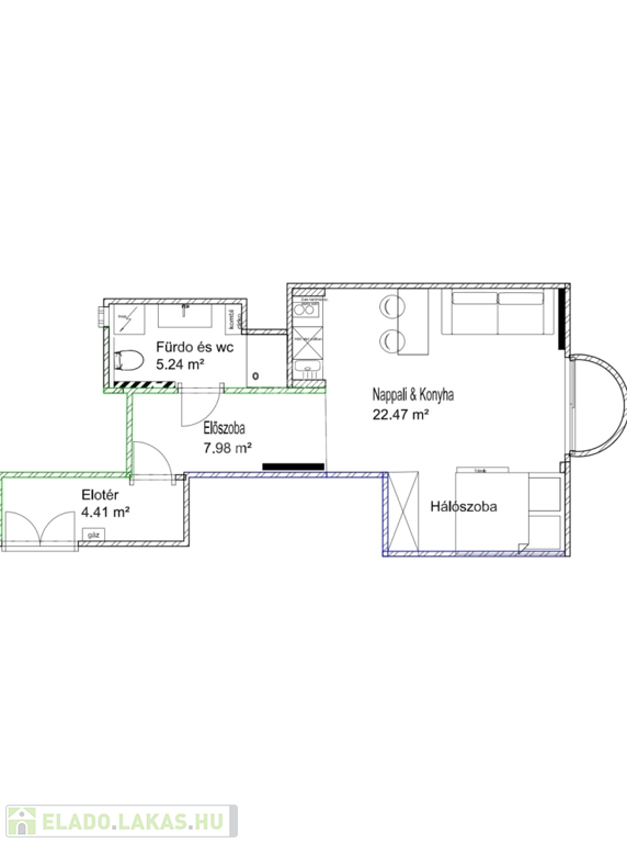 • Világos, napfényes elrendezés, nappali + hálórész