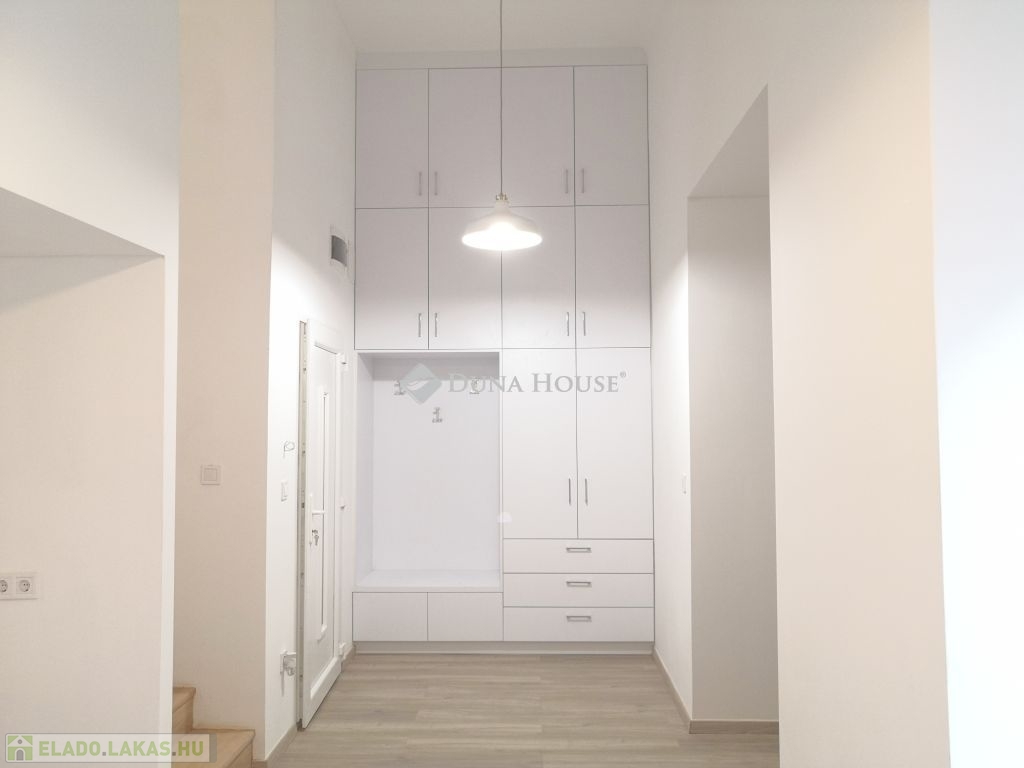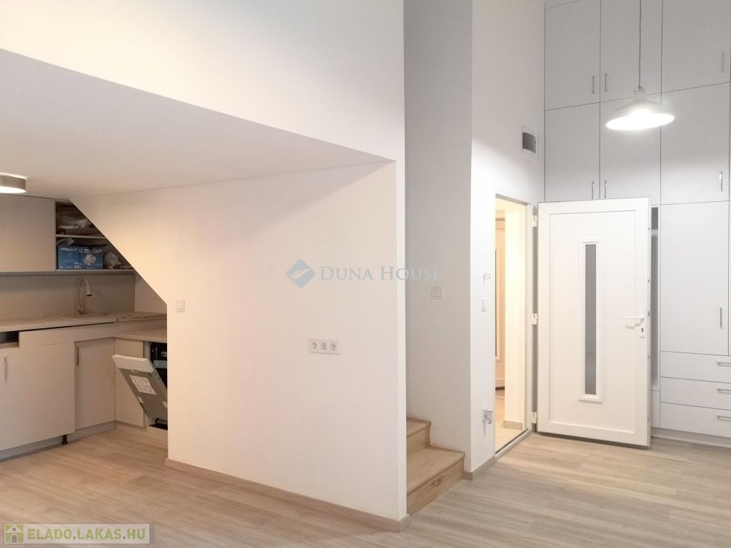 FRISSEN, TELJES KÖRBEN, BELSŐÉPÍTÉSZ TERVEI SZERINT FELÚJÍTOTT, AZONNAL BIRTOKBAVEHETŐ APARTMAN A VÍGSZÍNHÁZ KÖZVETLEN KÖZELÉBEN! XIII. kerület, Újlipótvárosban, a Vígszínháztól mindössze 80 lépésnyire, szép állapotú, egyedi hangulatú polgári társasházban eladó egy félemeleti, zöld kertre néző, kifejezetten világos, 44m2 lakóteret kínáló, nappali + hálóhelyiséges, frissen felújított, belsőépítész tervei szerint átalakított, akár azonnal birtokba vehető apartman. Az ingatlan felújítása során nagy belmagasságát helyenként extra szint kialakításával használták ki. Tágas, amerikai konyhás nappalijából ennek köszönhetően egész szobányi hálóhelyiség nyílik, a galériaszinten, ahol a belmagasság szintén lehetővé teszi, hogy normál hálóhelyiségként használjuk. A már megnevezett helyiségeken kívül tágas fürdőszoba+wc, egy egész falnyi beépített gardróbbal felszerelt előszoba, és a nappaliból nyíló étkezősarok találhatóak még a lakótérben. A bejárat előtt egy kifejezetten praktikus, zárt előtér található, ahol egy hatalmas beépített szekrény is megtalálható, kulturált, rendezett tárolási lehetőséget biztosítva az ingatlant használók számára, akár kerékpár, roller biztonságos parkolására is alkalmas. A helyiség mosókonyhaként is hasznosítható, melyhez mosógépkiállás és mosógép is telepítésre került. Állapotát tekintve az ingatlan teljesen felújított, újszerű állapotban van, a felújítás óta még senki sem használta, új tulajdonosa is ebben az állapotában veheti birtokba. A felújítás során szó szerint mindent kicseréltek a lakótérben, műszaki és esztétikai szempontból egyaránt. A felszereltséget a teljes gépesítésű (sütő, főzőlap, elszívó, mosogatókép, hűtőszekrény) konyhabútor mellett hatalmas beépített gardrób szekrények, dupla kapacitású radiátorok, hűtő-fűtő klímaberendezés, a galériaszinten kilakított beépített gardrób is emelik. A fűtést és a melegvíz ellátást elektromos cirkó biztosítja, mely szintén újonnan lett felszerelve. A nappali hatalmas ablakfelülettel rendelkezik, melynek köszönhetően kifejezetten világos. Amennyiben mégis árnyas környezetre vágyunk, a nyílászáró elektromos redőnnyel is fel lett szerelve, így az optimális fényviszony gombnyomásra beállítható. A társasház tiszta, rendezett, kívül-belül szép állapotak örvend. Számos műszaki felújítás is megvalósult az épületben. A lakóközösség kiváló, a közös területeket tisztán és rendben tartják. A környezet ellátottsága kitűnő, üzletek, oktatási intézmények, szolgáltatások, kikapcsolódási, sportolási lehetőségek karnyújtásnyira találhatóak. A Vígszínház mindössze 80 lépésnyire, a Westend bevásárlóközpont pár perc sétányira található. A tömegközlekedés szintén kitűnő, a közeli Jászai Mari térről és Nyugatiból többek között az M3 metró, a 4-6-os villamos, 2-es villamos, és számtalan autóbusz, trolijárat biztosít a város szinte minden pontjával könnyű összeköttetést. Irányár: 79,9 M Ft