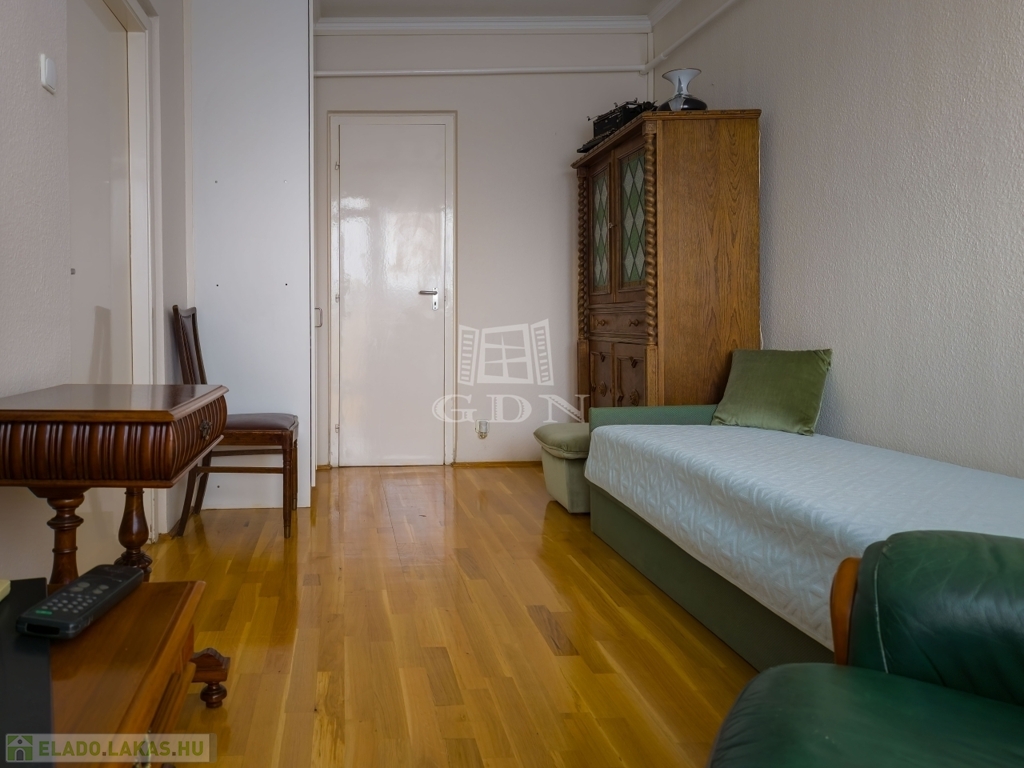 A lakás világos, csendes, és a magas emeletnek köszönhetően gyönyörű kilátás nyílik a budai hegyekre.