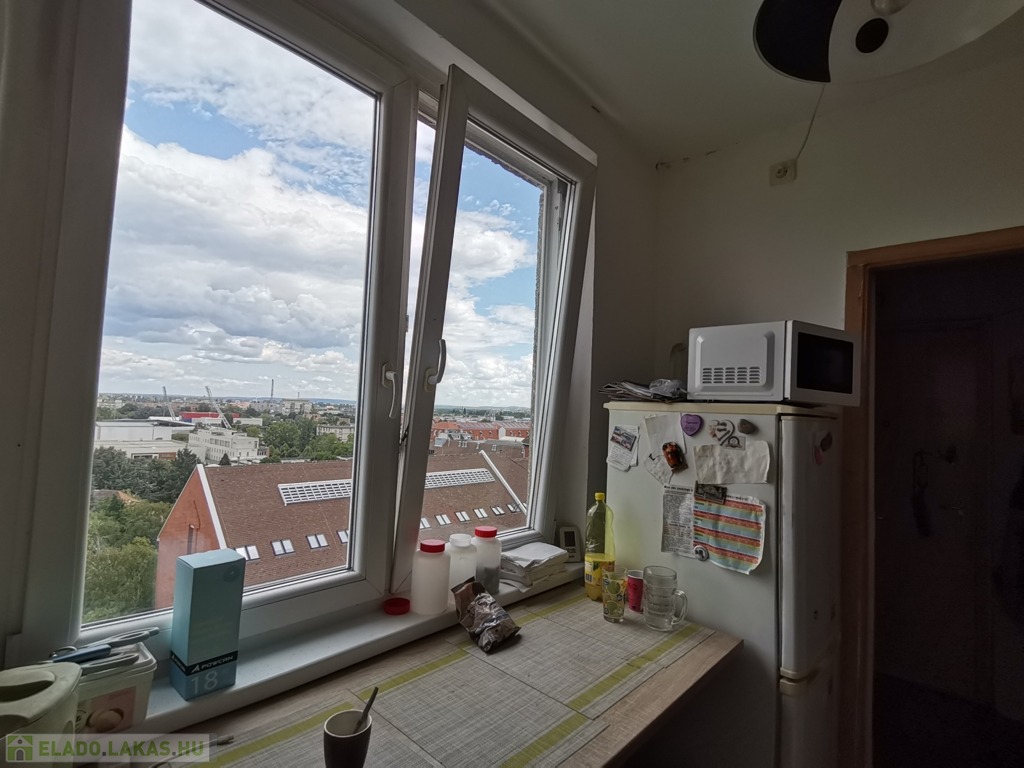 A magasba nyúló városi csendben, ahol a XIII. kerület égbe emelkedő panelházai közt megpihen a napfény, ott vár rád ez a 10. emeleti otthon – egy nyitott álom, amit valóra válthatsz.
