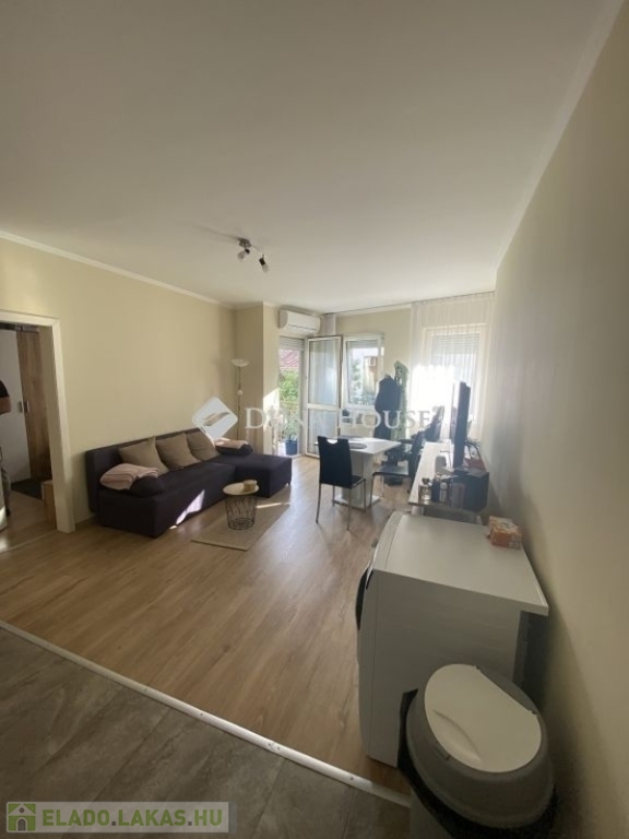 A Kis Gömb utcában, liftes ház 3. emeletén eladó egy két szobás, amerikai konyhás, napfényben úszó, dél-nyugati fekvésű lakás. A lakásban tágas nappali, gépesített konyha, légkondicionáló és redőnyök növelik a komfortérzetet. A fürdőszoba és a WC külön helyiségben található, ami praktikus és kényelmes elrendezést biztosít.
