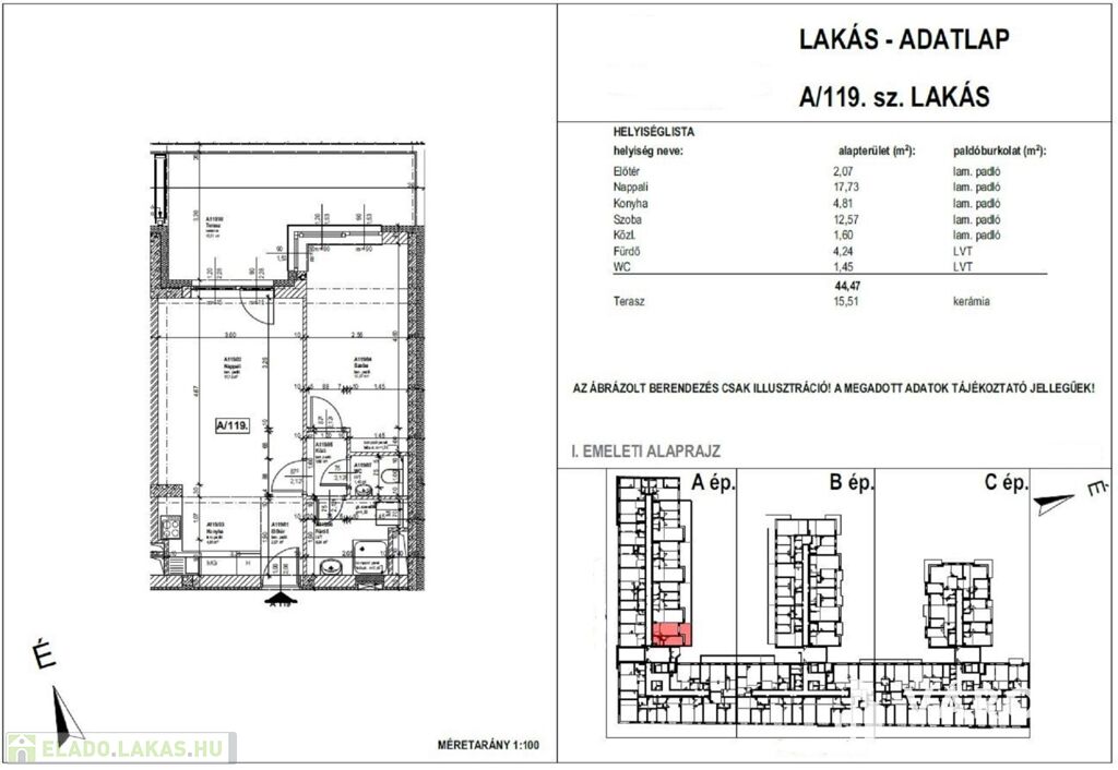 A képek egy mintalakást ábrázolnak, a rajtuk látható berendezési tárgyak és alaprajz tájékoztató jellegűek, lakásonként eltérhetnek, kérem ezt vegye figyelembe a hirdetés megtekintésekor. Konkrét lakás megtekintese előtt tudok a lakáshoz ténylegesen tartozó alaprajzot küldeni, illetve a lakás házon belüli elhelyezkedéséről is van alaprajzom, ezt is el tudom küldeni.