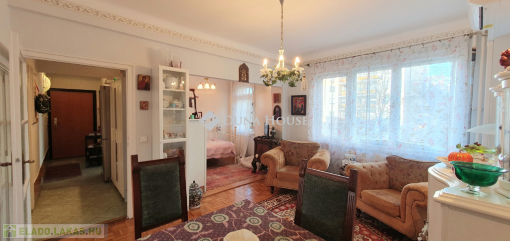 remek lokáció minden, ami egy városi otthonhoz kell!A XIII. kerület egyik legkedveltebb részén, a Göncz Árpád városközpont közelében eladó ez a 61 m²-es, klímás lakás egy 8 emeletes, rendezett, liftes társasház 3. emeletén.Eredetileg 3 szobás, jelenleg 2 szobássá alakított, de egy válaszfal visszaállításával könnyedén újra háromszobás otthonná tehető így tökéletes választás fiatal pároknak, családoknak vagy befektetőknek is.A déli és keleti tájolásnak köszönhetően a lakás egész nap világos és napfényes, a tágas loggia pedig ideális hely a reggeli kávéhoz vagy esti kikapcsolódáshoz.A praktikus alaprajz és a jó állapot gyors beköltözést tesz lehetővé.Főbb jellemzők:61 m²-es, eredetileg 3 szobás (könnyen visszaalakítható)Napfényes, déli és keleti tájolásTágas, világos loggiaKülön fürdő és WCKamra és klímaJó állapotú, rendezett, liftes ház3. emeleti elhelyezkedés kényelmes, mégis csendesA bútorok megegyezés szerint maradhatnak, igény esetén a lakás kiürítve kerül átadásra.Kiváló lokáció, minden karnyújtásnyira:A környék kivételesen jól ellátott a Göncz Árpád városközpont pár perc séta, ahol megtalálható az M3-as metró, villamos- és buszjáratok, valamint számos irodaház, étterem, kávézó és bevásárlási lehetőség.A Duna-part, a Margitsziget és több zöld park is rövid sétával elérhető, így a városi élet és a természet közelsége egyszerre élvezhető.Ha egy világos, jól elhelyezkedő, értékálló otthont keres, ne hagyja ki ezt a lehetőséget!