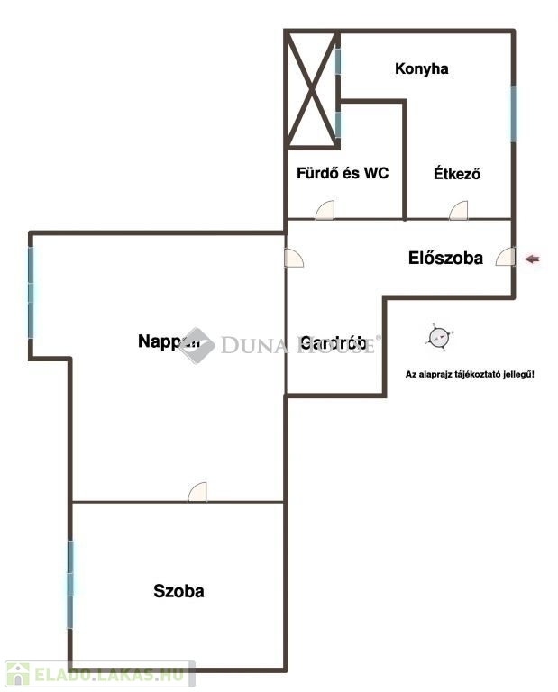 A jelenlegi elosztás: étkezős konyha, tágas nappali, külön hálószoba és fürdő jól használható, de igény szerint könnyen átalakítható.