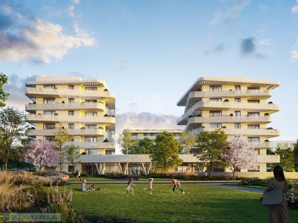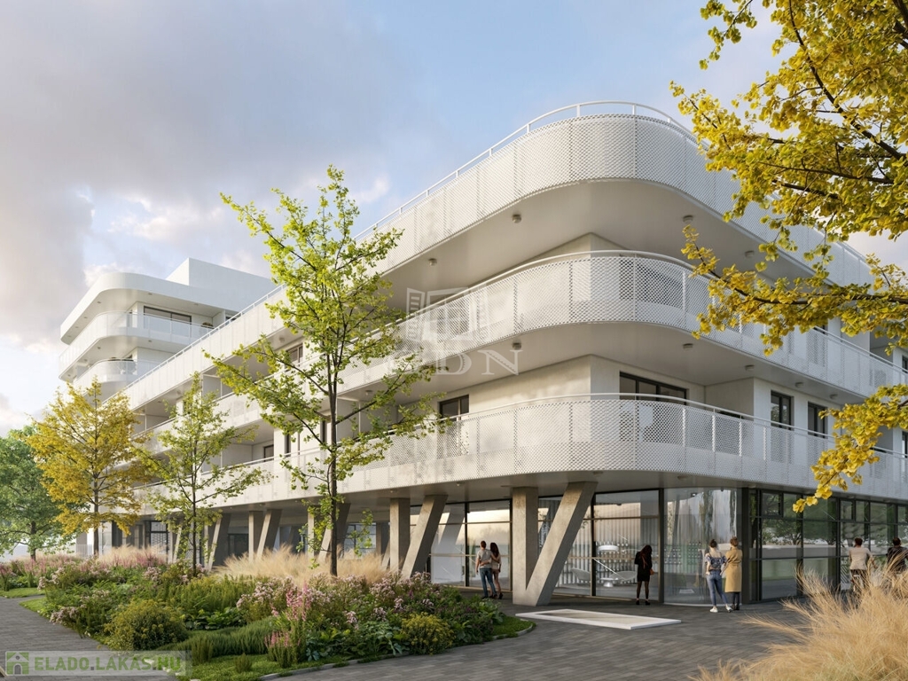 A két épületből álló beruházás során összesen 140 lakás épül, melyek izgalmas vonalvezetésű erkélyei segítik a többlakásos épület harmonikus illeszkedését a ligetes park és a megújult Rákos-patak által létrejövő környezetbe.