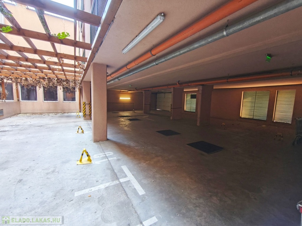 A házban fedett zárt garázs, kerékpártároló biztosítja a lakók parkolását. Az új tulajdonosnak van lehetősége saját garázs megvásárlására.