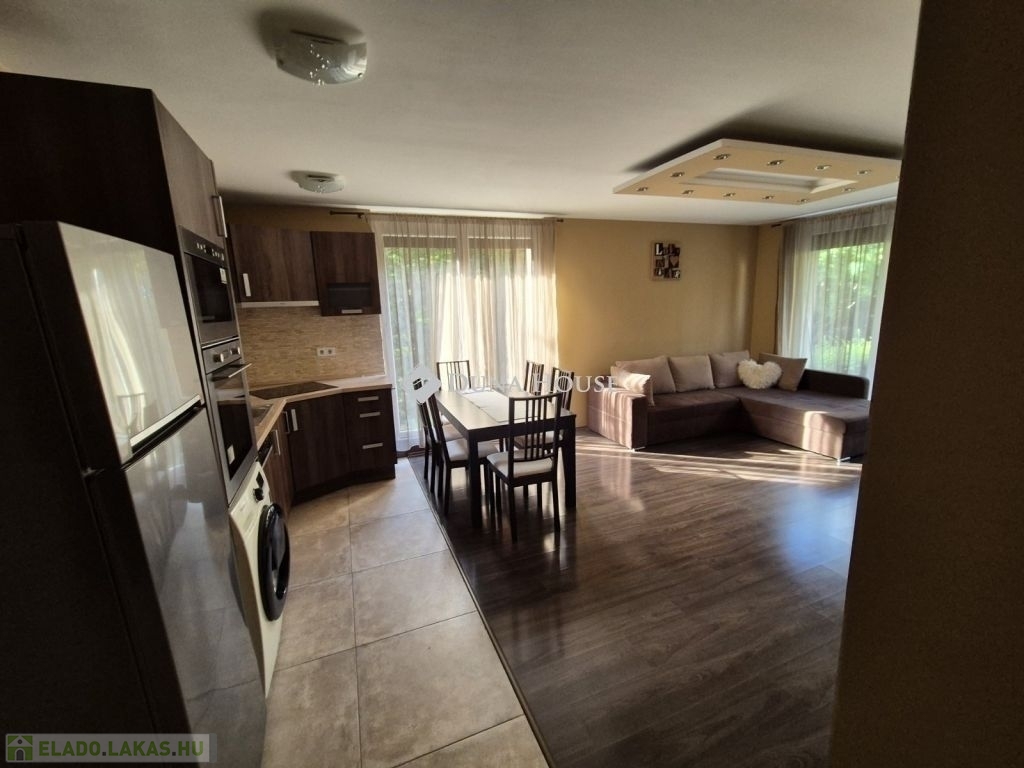 Alsórákos kedvelt, rendezett, társasházakkal kialakított, zöldövezeti részén, csendes mellékutcában eladó egy 2015-ben magas minőségben épült 7 lakásos társasház földszintjén található, tehermentes, 67 m2-es, amerikai konyhás nappali + két külön nyíló hálószobás, dupla klímás lakás terasszal és kertkapcsolattal. A remek lehetőségeket nyújtó kertrész - folyamatosan kertész által gondozott, osztatlan közös tulajdonú, de mivel a lakás közvetlen kertkapcsolata, így csak a lakásban élők használják - kiváló lehetőség kisgyerekkel, háziállattal, vagy azok számára, akik a városi életvitelük kapcsán egy családi házat nem szeretnének fenntartani, de vágynak egy kis saját zöld területre. Vételár részét képezi a gépesített konyhabútor, a teremgarázs beálló és a tároló. A beálló az átlagosnál nagyobb méretű és akár szeparálható is, a tároló pedig közvetlenül a beálló mögött helyezkedik el.