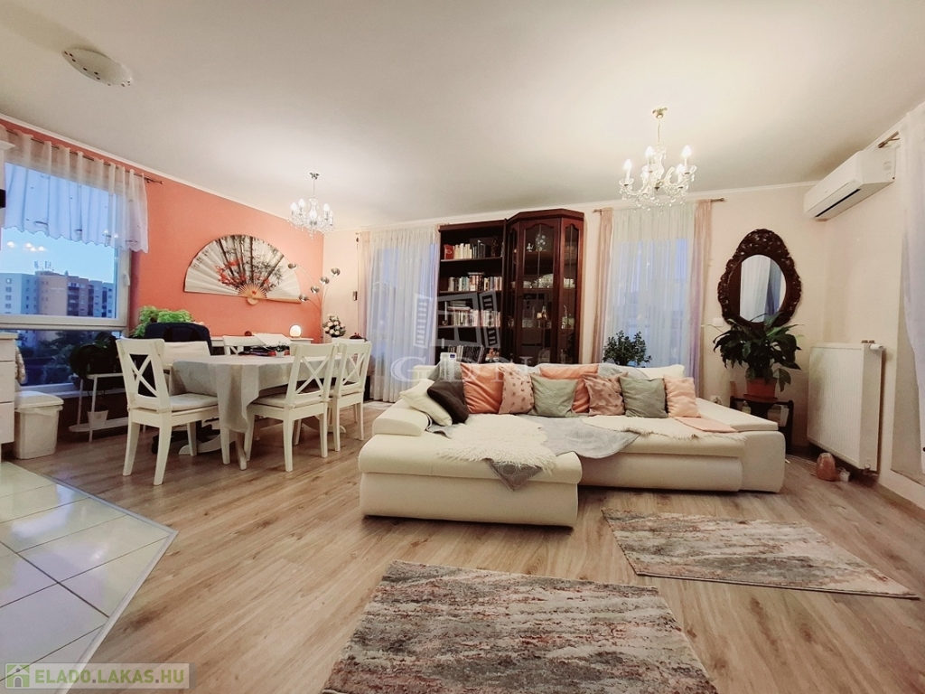 A lakás rendkívül jó elosztású, körbe ablakokkal, így egész nap világos.