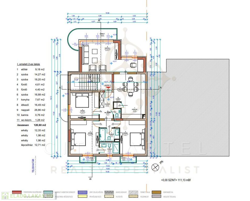 1.lakás: földszint: 165,75 m Ft 115 m2 4 szoba