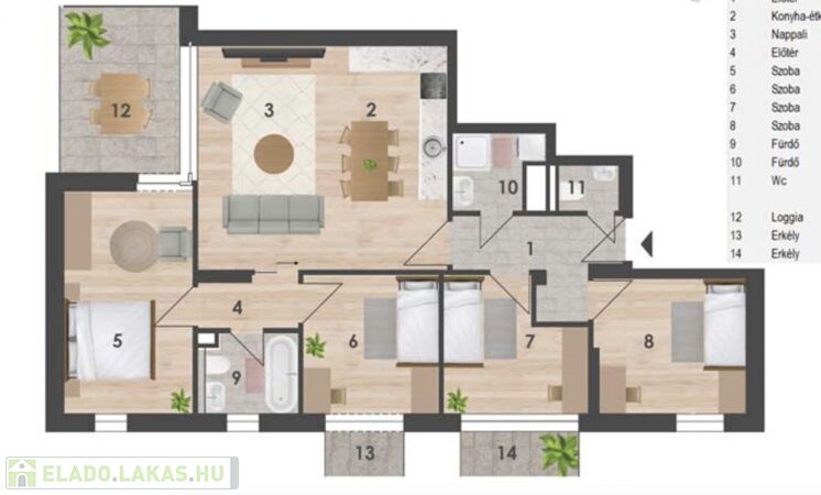 - 1–5 szobás elosztás, 30–130 m²-es alapterülettel