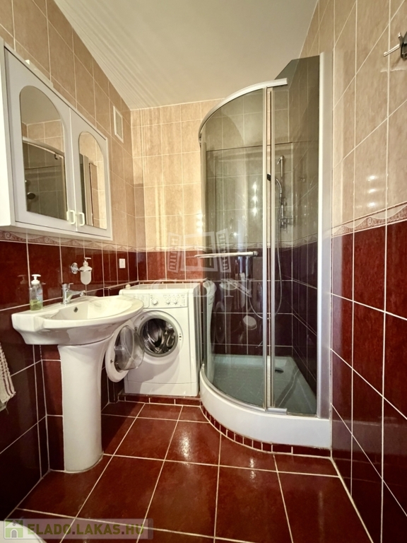 Per- és tehermentes, üres, frissen festett lakás, berendezett, gépesített konyha, mosógéppel ellátott fürdőszoba.