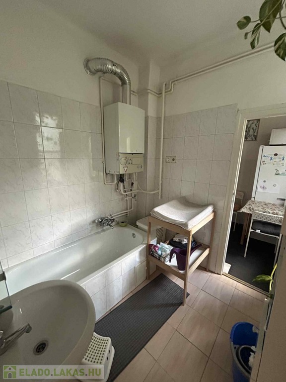 Eladó a XIV. kerületben, a Kalapács utcában, egy 3 emeletes lift nélküli tégla társasház 1.emeletén egy 50 m2-es,2 szobás, K-Ny-i fekvésű, konvektoros fűtéses, parkra néző, saját vízórával felszerelt, EGYEDI HANGULATÚ, jó állapotú lakás!