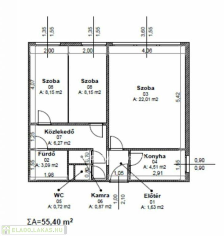 A szobák KÜLÖN NYÍLÓAK, a konyha ABLAKOS, VILÁGOS.