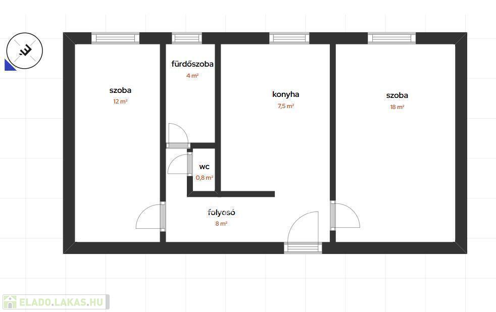 A szobák KÜLÖN NYÍLNAK, ablakai ZÖLD kertre néznek, az ingatlan délkeleti tájolású.
