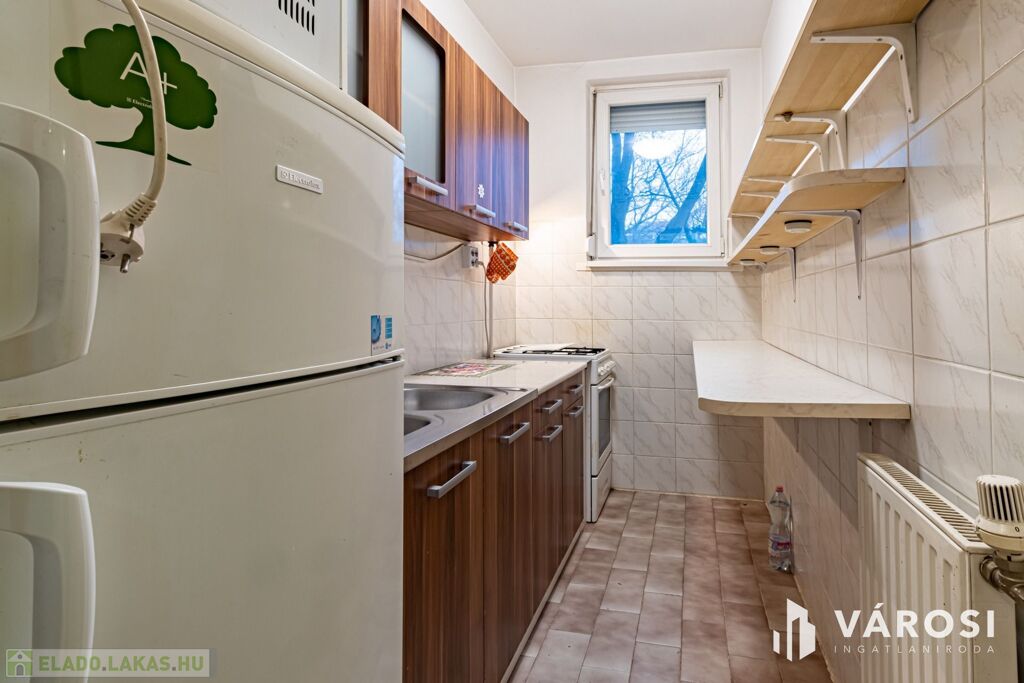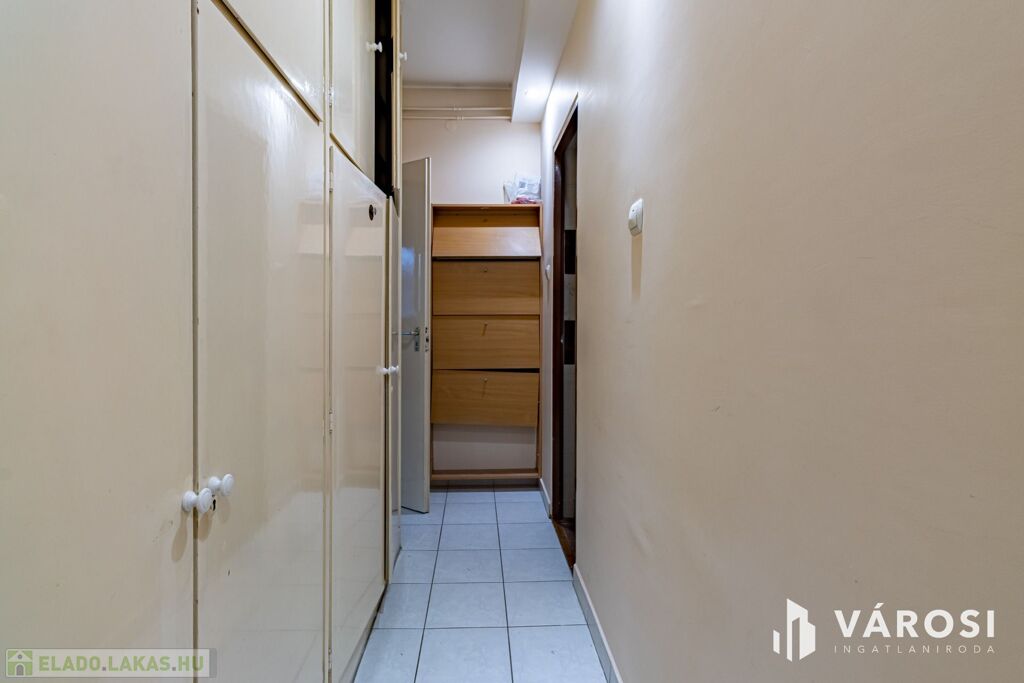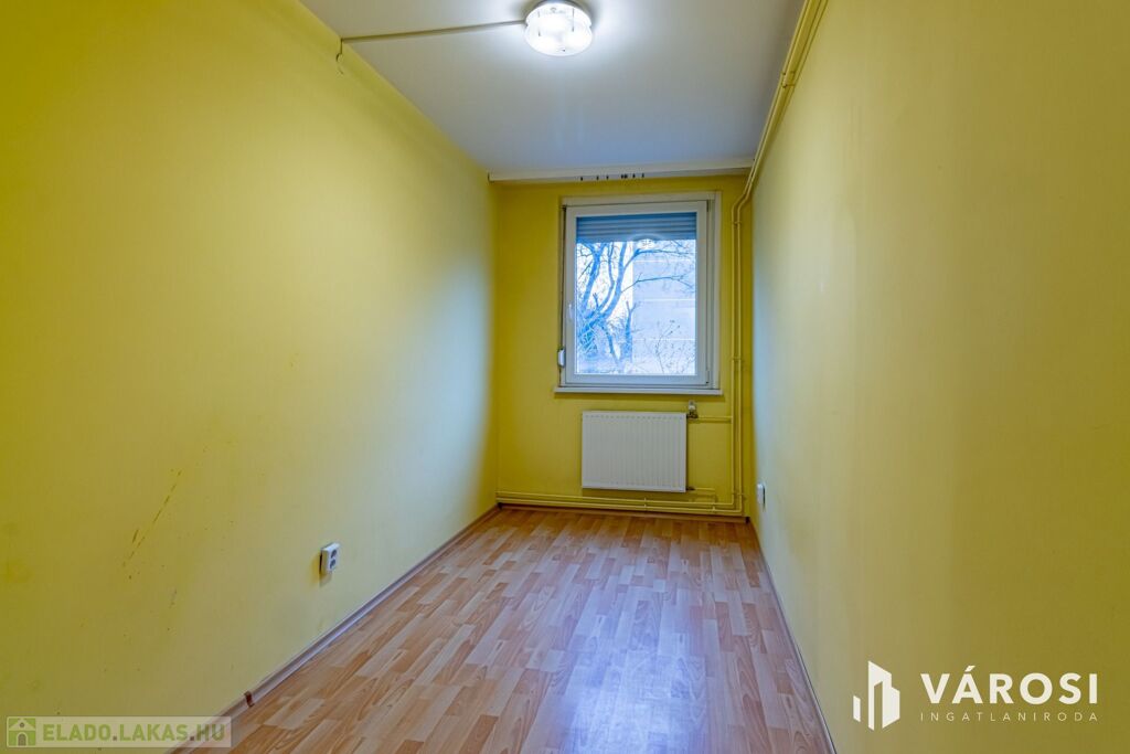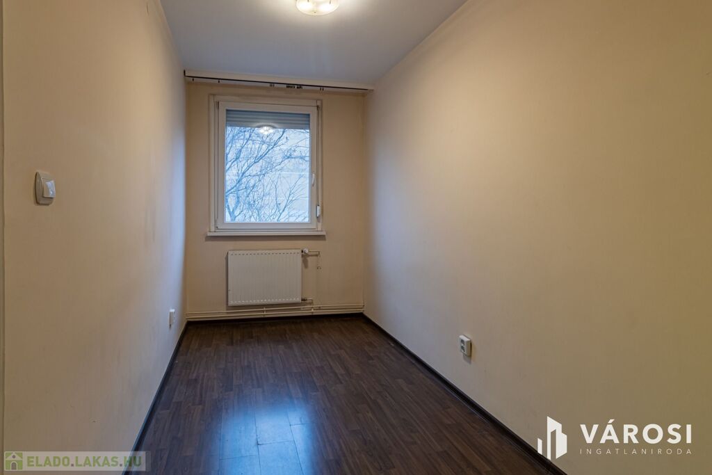 Eladó a Nagy Lajos király útján, egy átlagos állapotú, földszinti, három szobás panellakás.