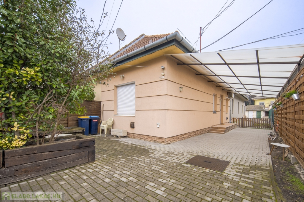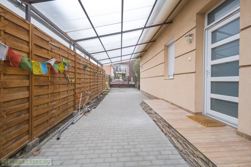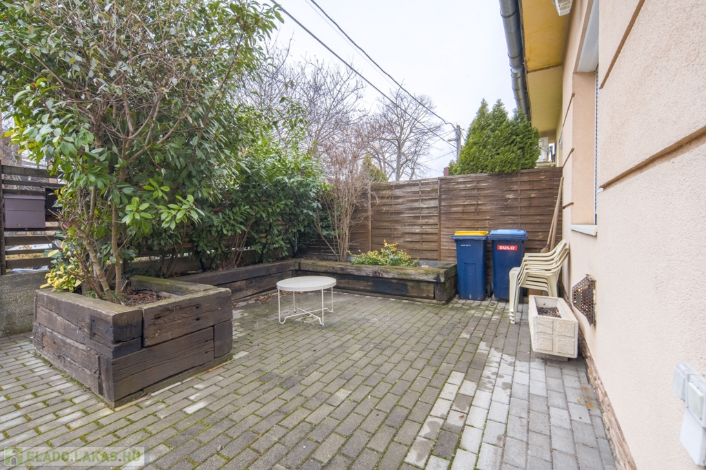 A ház 2 lakásos, a lakás előtt lévő, 22 m2-es kertrész az eladó lakásunkhoz tartozik és az ár részét képezi, így az a rész szabadon hasznosítható, a lakás melletti rész pedig osztatlan közös tulajdon a hátsó lakrész tulajdonosával, melyek megosztási szerződéssel vannak megosztva és elválasztva, így az ingatlan minden további nélkül hitelezhető.