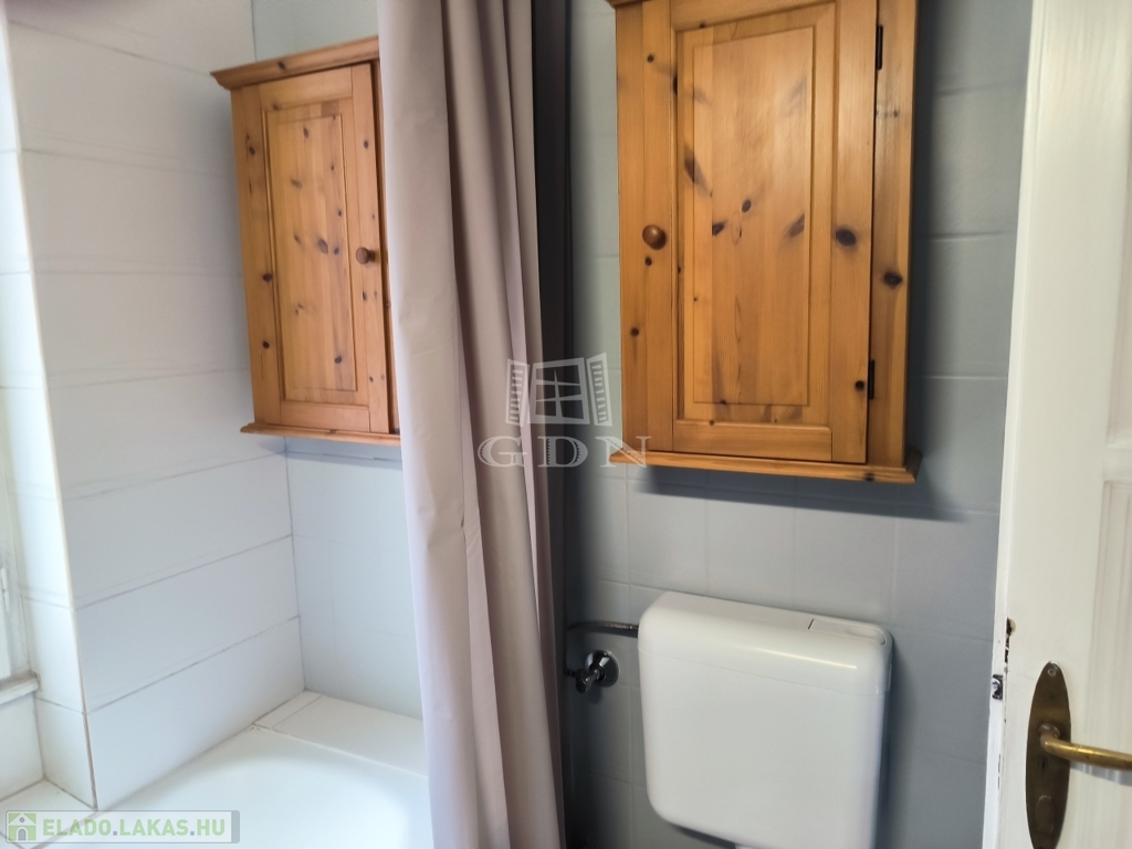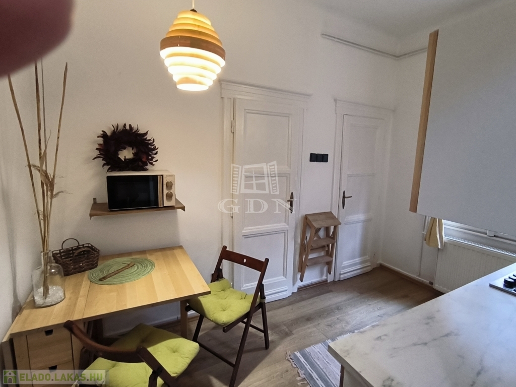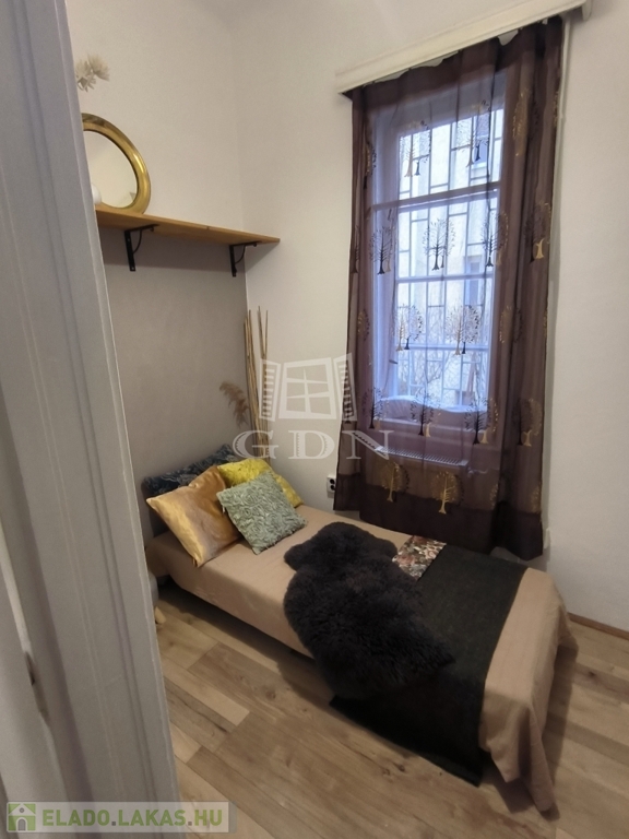 Az Amerikai út közelében eladó egy jó állapotú másfélszobás földszinti kertkapcsolatos lakás egy egy emeletes házban.