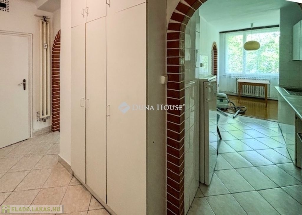 XIV. Törökőr részén, 2. emeleti, 61 m2-es, nagy teraszos lakás egy liftes, téglaépítésű társasházban eladó. Az ingatlanba lépve a közlekedő bal oldalán egy WC és kamra, szemben pedig egy kádas fürdőszoba található, melyből átjárás nyílik egy tágas, 20 m2-es szobába, melynek ablakai a ház gyönyörű, fákkal teli kertjére néznek. Ebben a látványban gyönyörködhetünk a lakás teraszáról is, ahol kényelmesen fogyaszthatjuk el reggeli kávénkat vagy zavartalanul élvezhetjük a nyári napsütést.