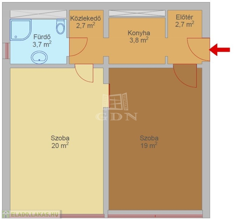 Két kényelmes méretű szoba biztosítja a lakók kényelmét.