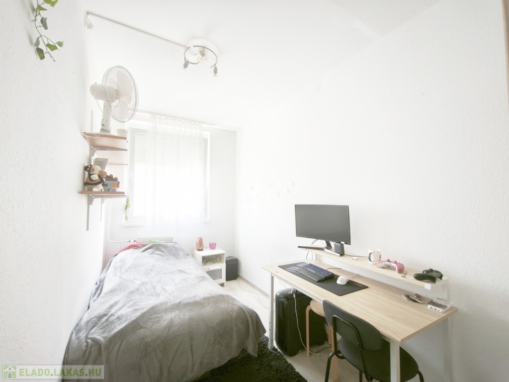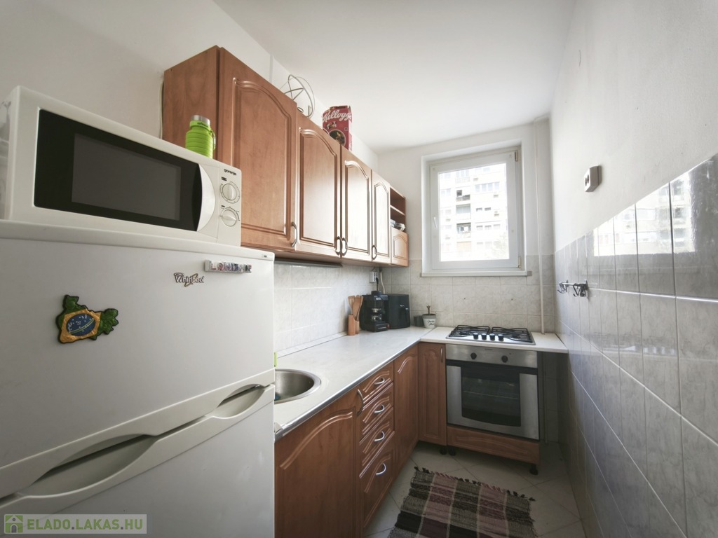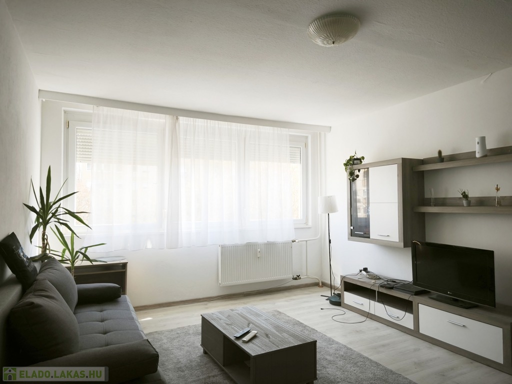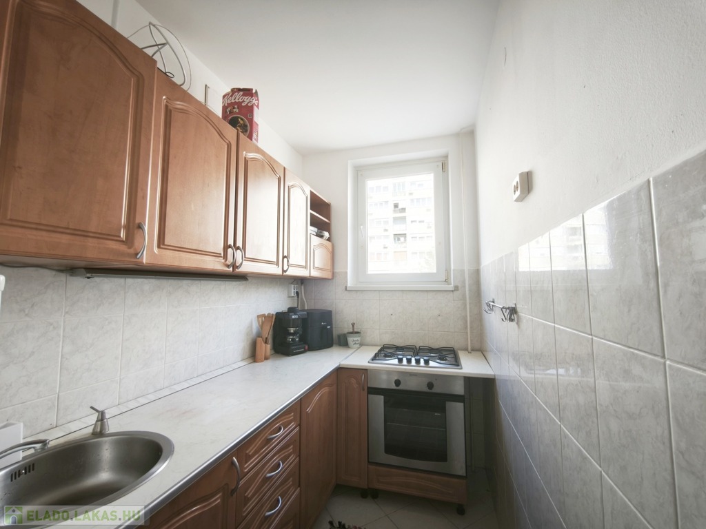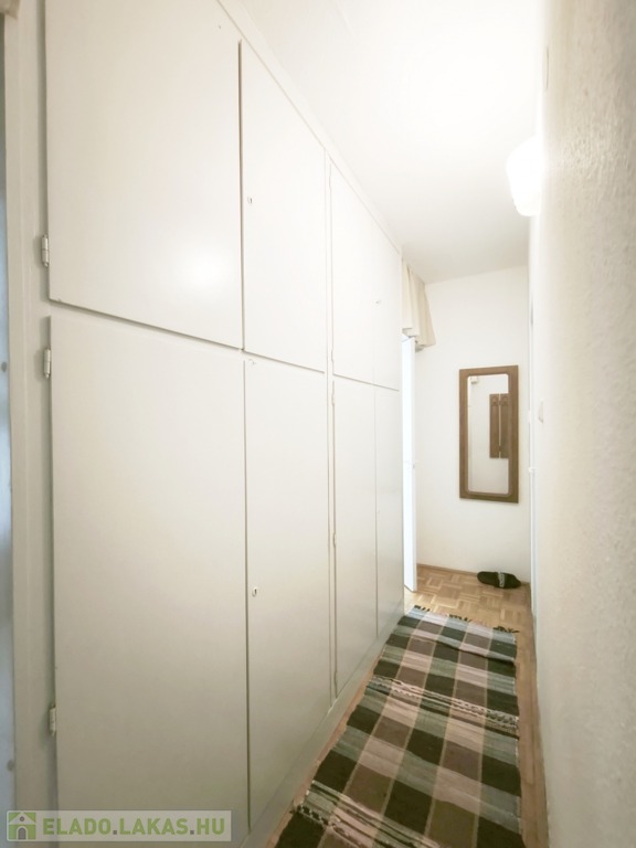 A rendezett, tiszta liftes lépcsőházból a több ponton záródó, biztonsági bejárati ajtón keresztül lehet bejutni. Belépve a lakásba az előtérből balra nyílik a gépesített, bútorozott ablakos tágas konyha ahova akár étkező asztalka is elfér, igény szerint. Jobbra nyílik a toalett, mellette egy polcokkal ellátott tároló ahol el tudjuk helyezni a nem minden nap használatos dolgokat. Szemben a tágas nappali szoba, keleti fekvésének köszönhetően napfényes, kellemes, komfortos érzetet nyújt. Innen jobbra a közlekedő egyik oldala beépített gardrób szekrénnyel van ellátva tovább növelve a tárolási felületeket. A közlekedőből nyílik a két fél szoba és szemben a kádas fürdőszoba, ahol a mosógép is helyet kapott.