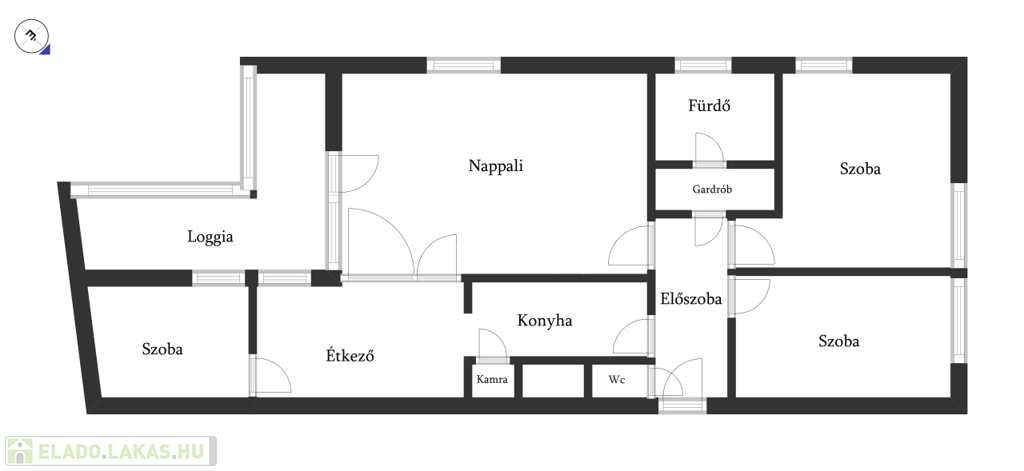 • 2 egész és 2 félszoba, praktikus étkezős kialakítás