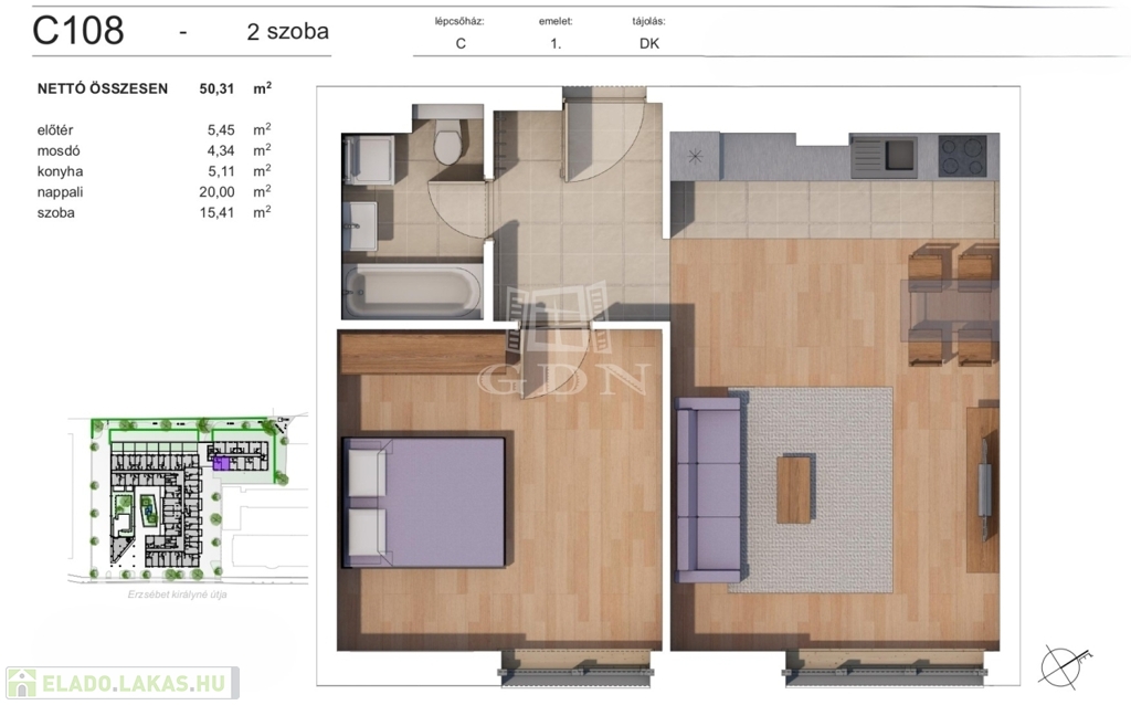 Várható átadás: 2025 III. negyedév. Szakaszos fizetési ütemezés. C108