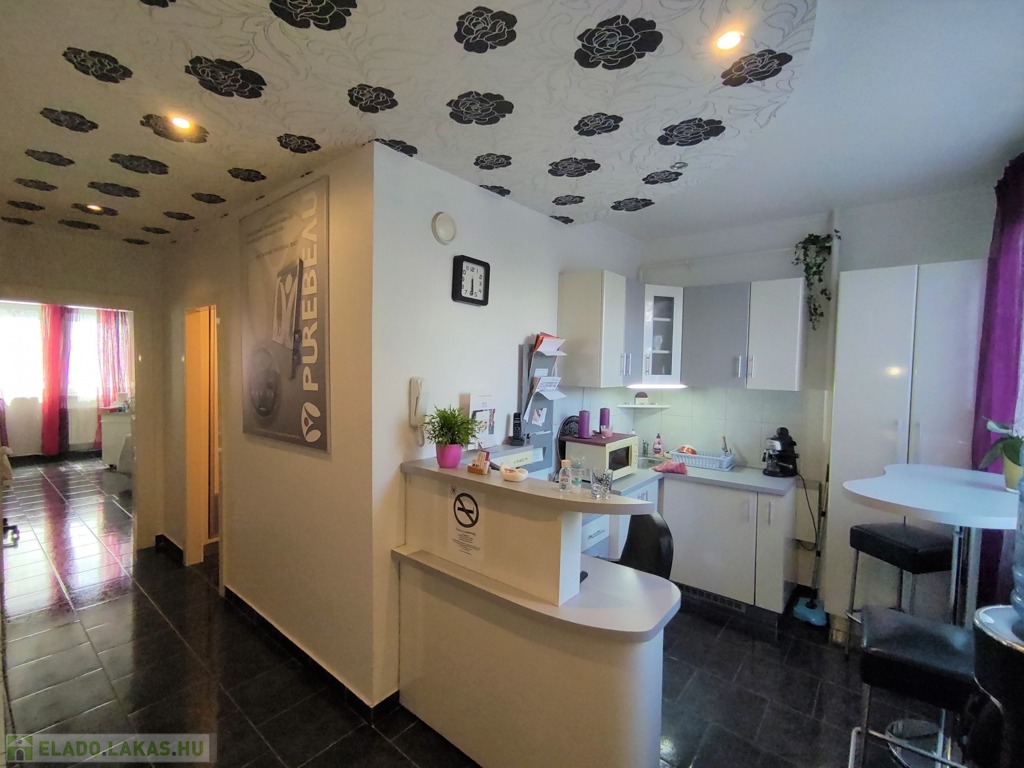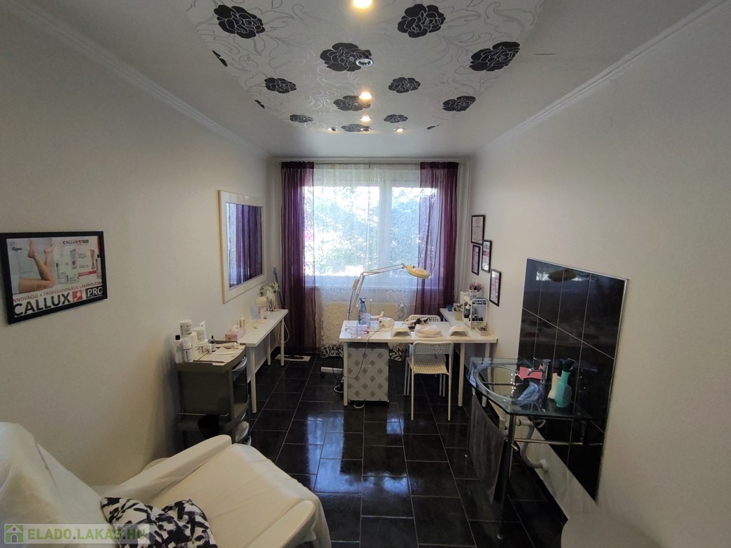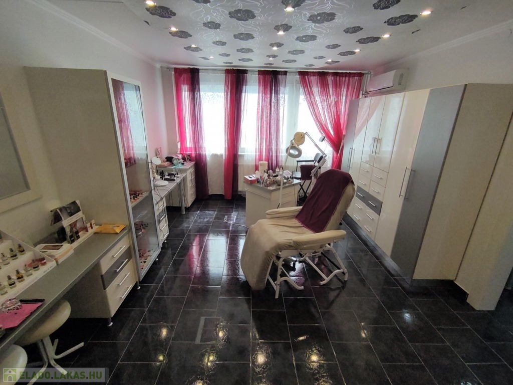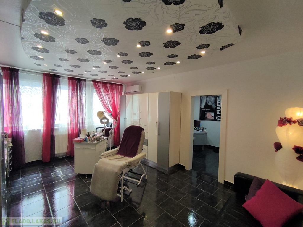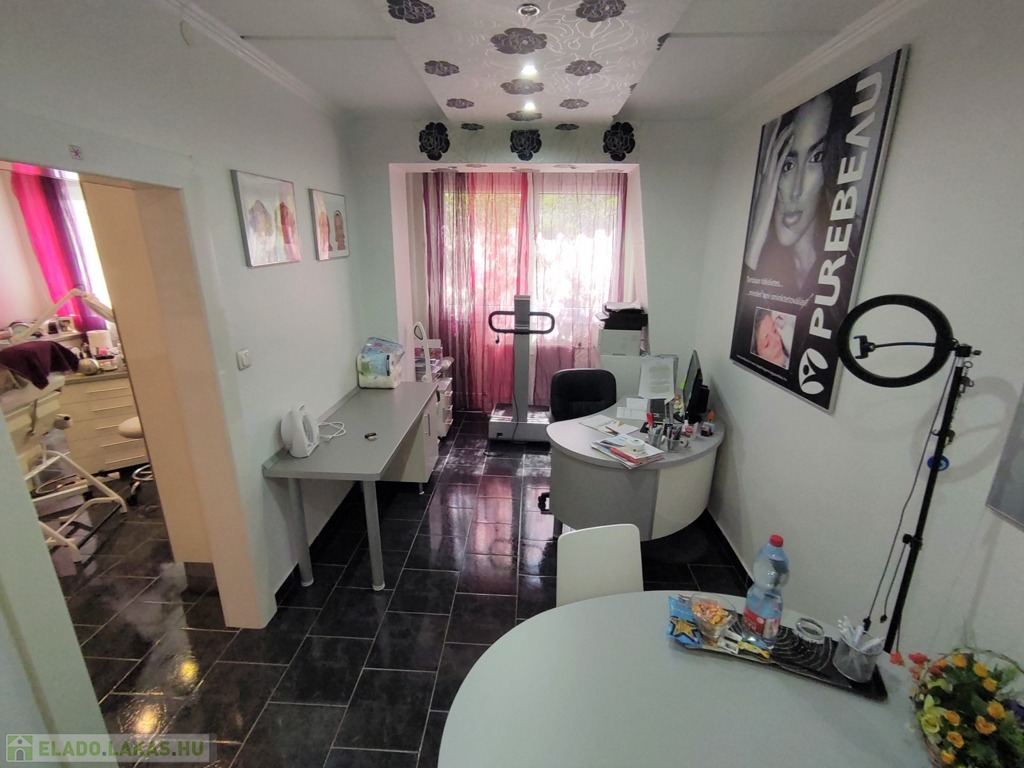 A lakásba a biztonsági bejárati ajtón juthatunk be. A nyílászárók mindenhol modern típusú műanyagra lettek cserélve. A tulajdonos az évek alatt több mindent felújított, klímával felszerelte az ingatlant. A szobák elrendezését tekintve kitűnő elosztásúak, a nappali DK-ti tájolású. Az ingatlan jelenleg szépségszalonnak lett kialakítva (akár gépesítve is átvehető), de lakásnak is alkalmas. Igényes járólap burkolattal lett kialakítva minden helyiség. A bejárattól az ablakos tágas 9,25 nm-es konyhába érkezünk meg. A 4,5 nm-es közlekedőn keresztül jutunk az ingatlan többi részébe. Az igényes járólap burkolatú előszobából jobbra a Wc és a 2,5 nm-es zuhanyzós fürdőt találjuk. Innen nyílik a 14 nm-es, nagy ablakos csempe burkolatú szoba nyílik. A közlekedőn egyenesen haladva a szintén járólap burkolatú, több mint 22 nm-es nappaliba lépünk, innen nyílik a 13 nm-es kisebb szintén járólap burkolatú szoba, ami eredetileg erkélyes volt, de beépítették. Az üzlethelyiség/lakás nagyon szép állapotú, többféle képpen át lehet alakítani. A lakás a D-i, DK-i fekvése miatt kedvező fényviszonyok jellemzik.