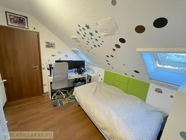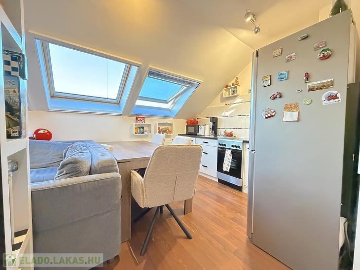 Az ingatlan nettó 47 nm, bruttó 58 nm alapterületű, praktikus elosztású: az alsó szinten amerikai konyhás nappali, a felső szinten pedig két külön nyíló hálószoba található. A házközponti fűtés egyedi méréssel működik, a klíma pedig a nyári hónapokban biztosítja a kellemes hőmérsékletet.