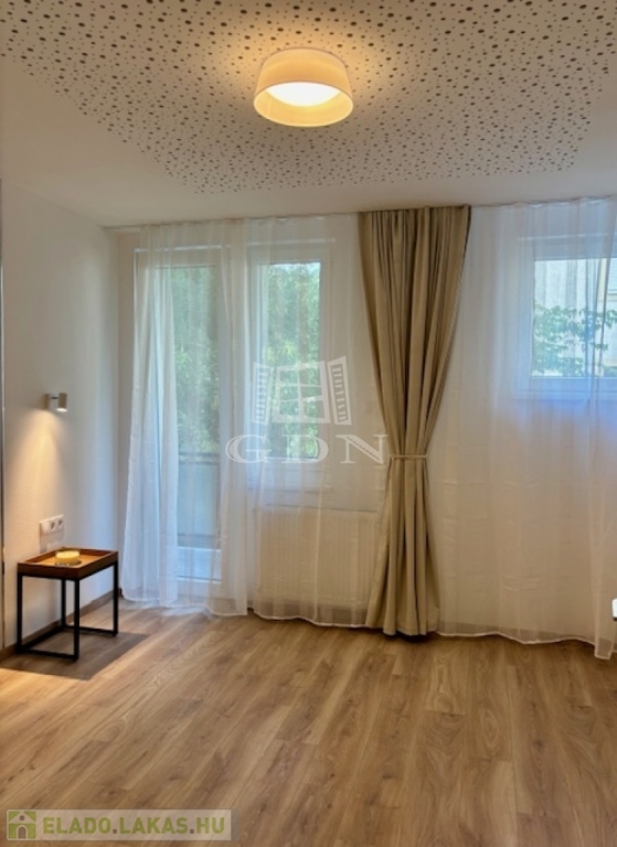 A lakásban két szoba található, mindkettő utcai kilátással.