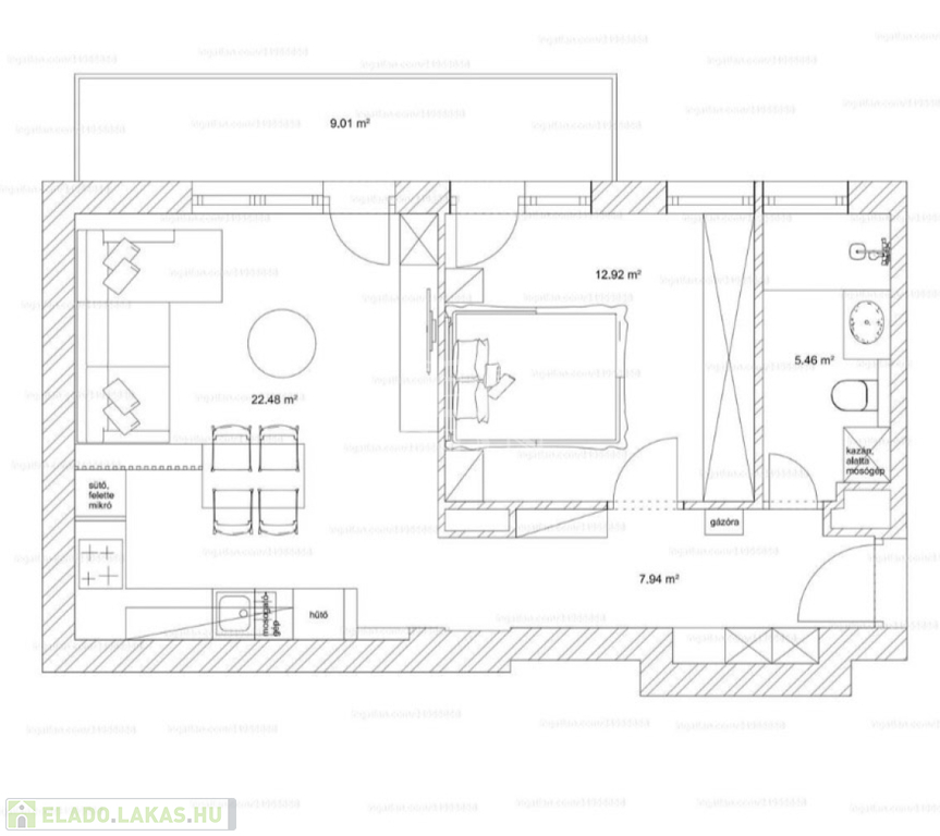 Az ingatlanhoz egy 9 négyzetméteres erkély is tartozik, amely kiváló lehetőséget nyújt a kikapcsolódásra.