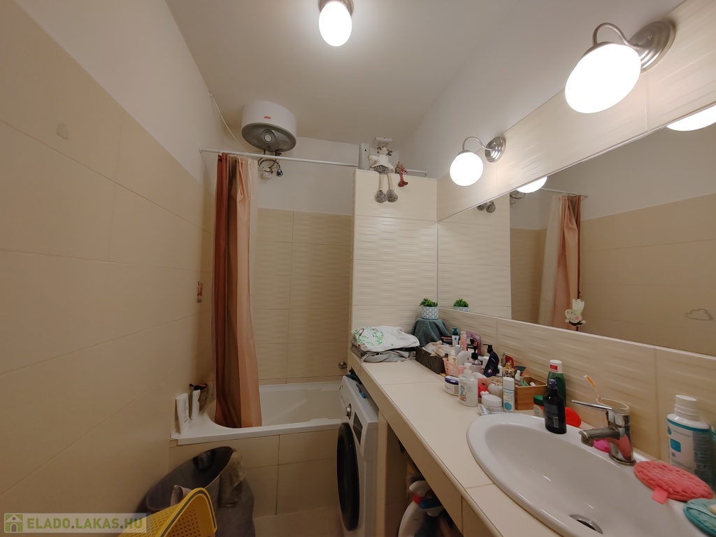 A 3 szobás, 1. emeleti, klímás lakás jó állapotú, príma elosztású, az amerikai konyhás nappaliból nyílik az egyik háló, a másik az előtérből. A fürdőszoba és a WC külön helyiségben. A fűtés konvektorral megoldott, a költségek alacsonyan tarthatók, a közös költség 14 000 Ft.