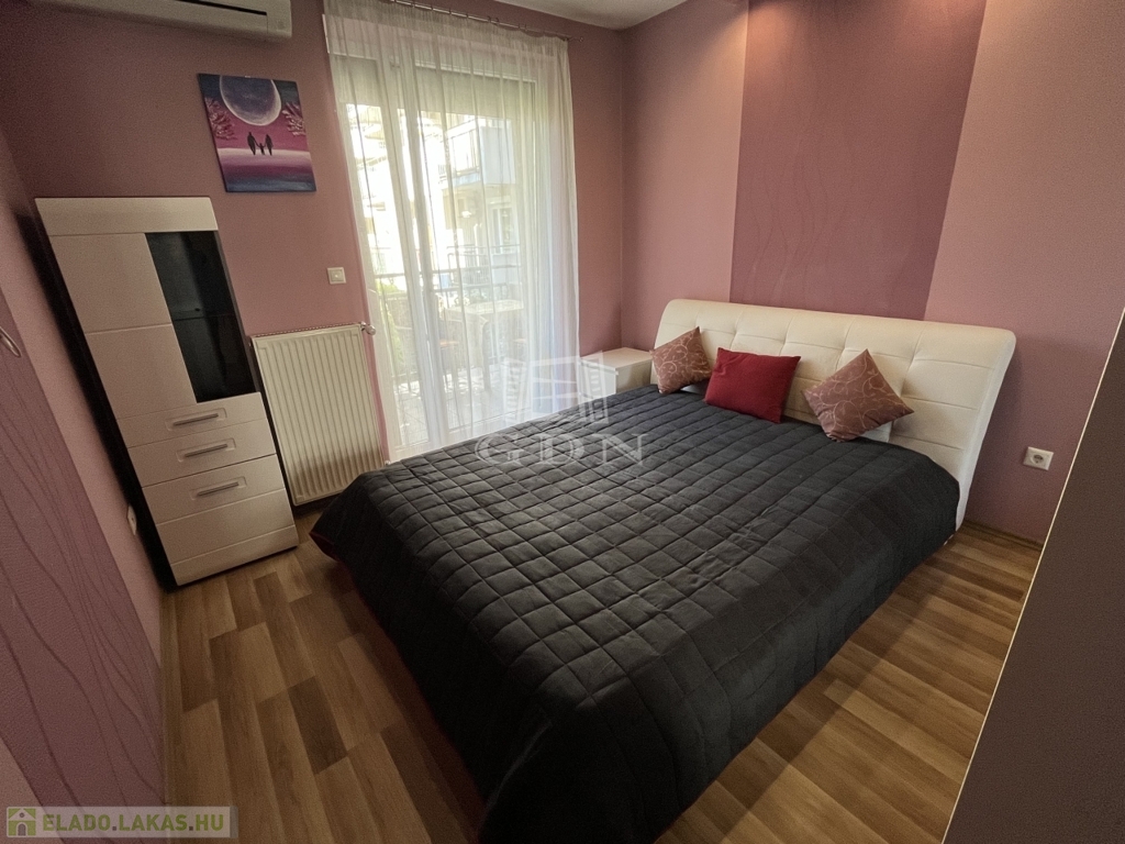 Az 56 négyzetméteres lakás rendkívül világos, 1. emeleti, két kényelmes, tágas, jól bútorozható, klimatizált szobával rendelkezik.