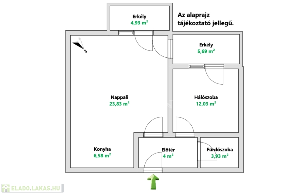 A lakás jellegzetessége a dupla erkély, melyek alapterülete 6 nm + 5 nm.