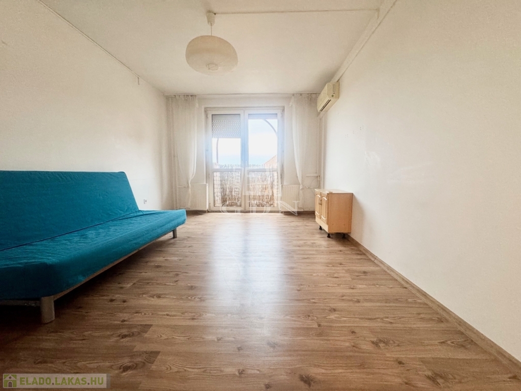 A lakás tulajdoni lap szerint 55 nm-es, 2 szobás. A tulajdonosok a társasháztól megvásároltak további 5 nm-t, mely előszobaként funkcionál.