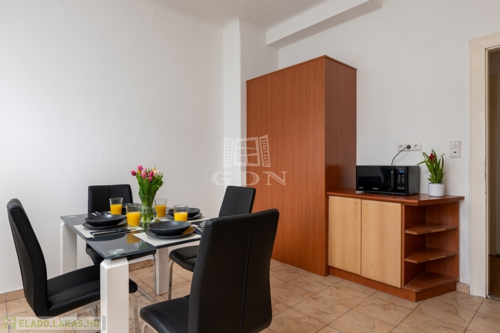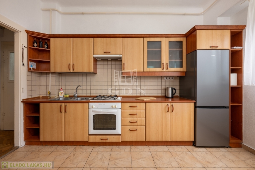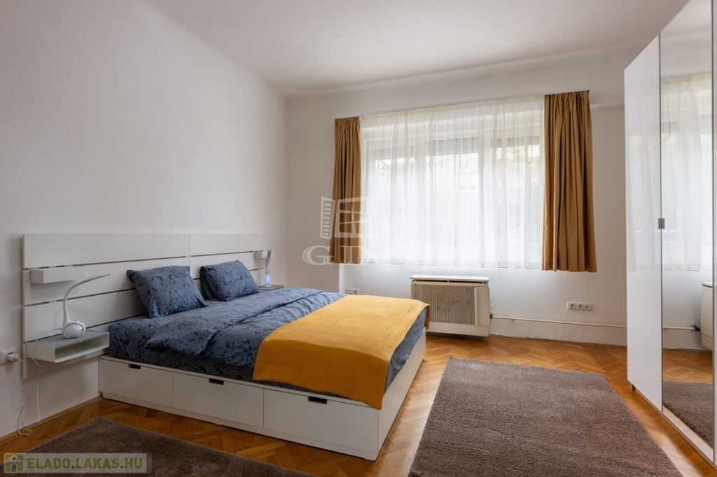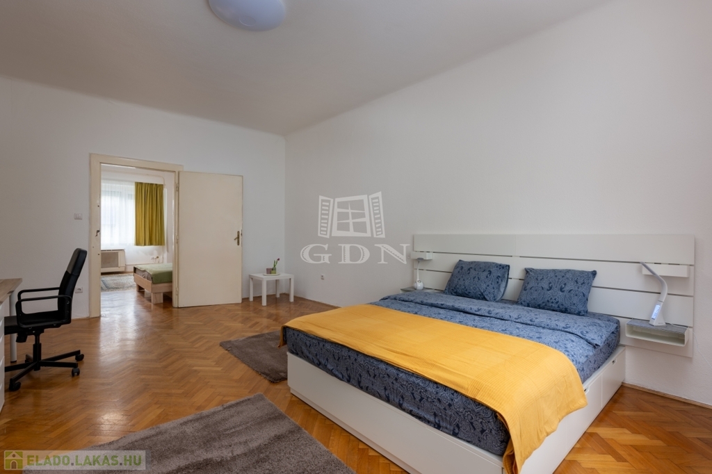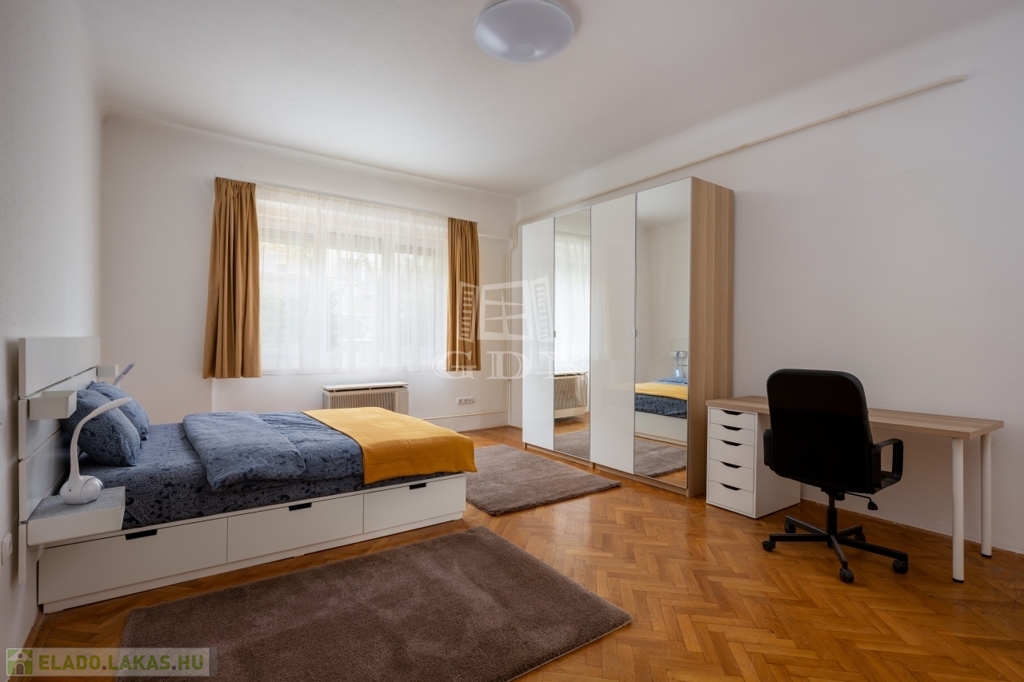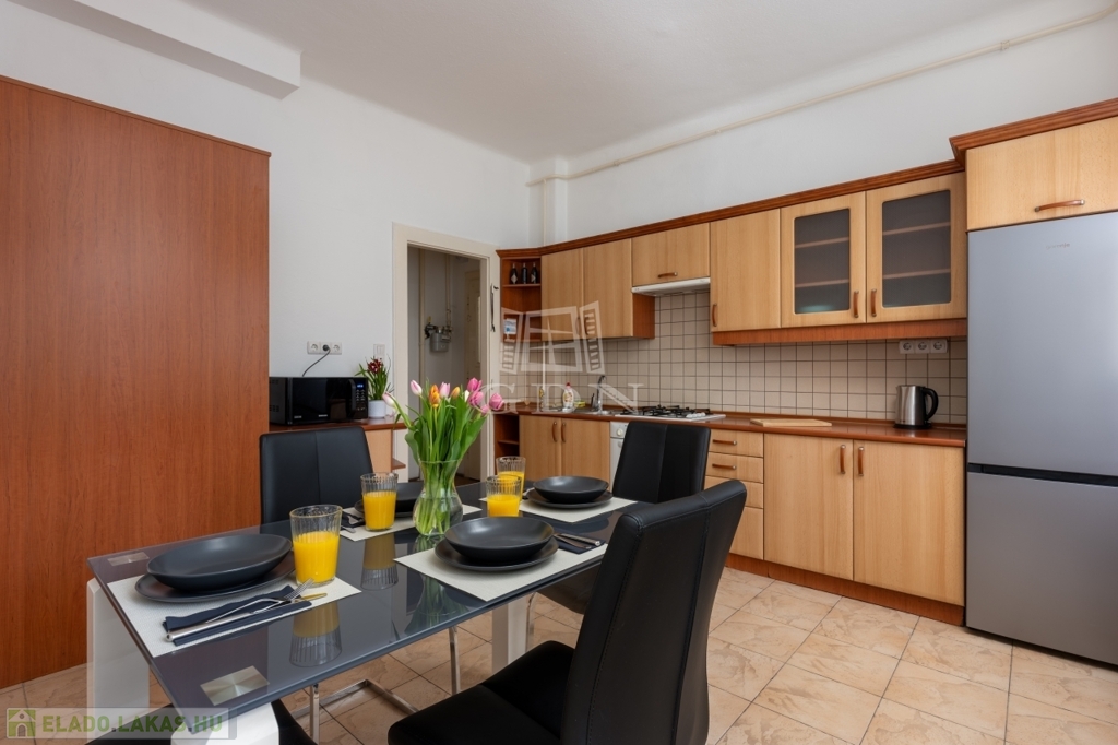XIV. kerület központi elhelyezkedésű részén, kötött és szabadpályás tömegközlekedési eszközök, üzletek, közintézmények és egyéb szolgáltatások gyűrűjében, kis lakásszámú, rendezett állapotú, liftes társasházban, eladásra kínálok egy 81 m2-es, ablakos konyhás, jelenleg két külön és egymásból is nyíló szobás (könnyen 3 szobássá alakítható) műanyag-redőnyös nyílászárókkal szerelt, klimatizált lakást.