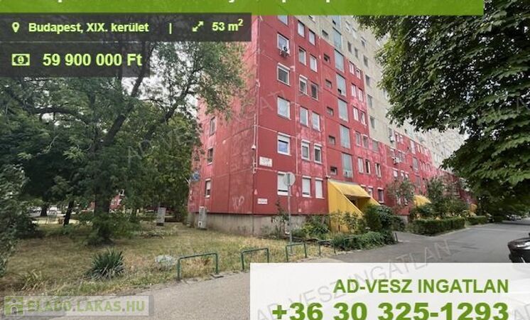ELADÓ Budapest XIX. kerületének közkedvelt, zöldövezeti részén, az Arany János utcában egy jó állapotú, 9.emeleti, szélső, 53m2-es panellakás, liftes, alacsony fenntartási költségekkel.