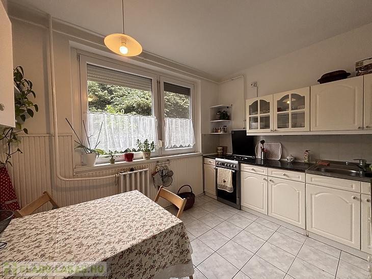 Az ingatlan praktikus elosztású, szobái külön nyílnak, a konyha pedig kifejezetten nagy és tágas, így étkezőként is jól használható, családok számára is kényelmes megoldást kínál. A nyílászárók műanyagok, a burkolatok jó állapotúak, a szobákban parketta található. A délkeleti fekvésnek köszönhetően a lakás világos, napfényes.