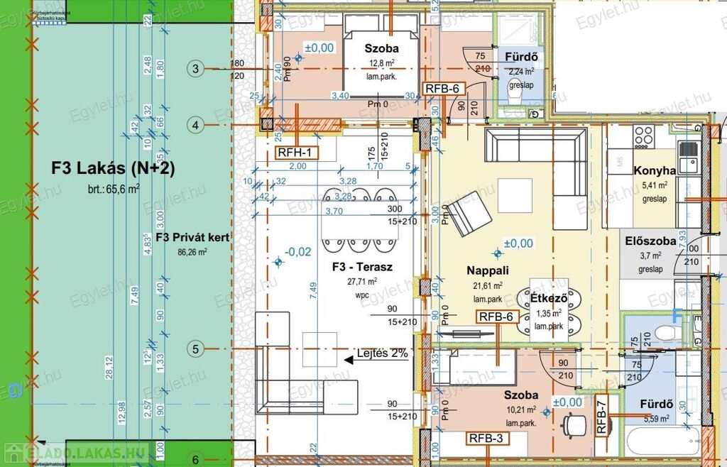 A privát kert mérete: 86 nm.