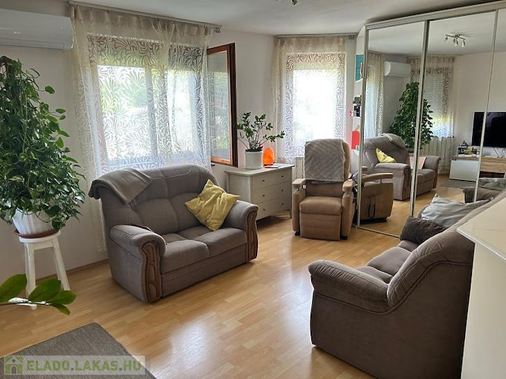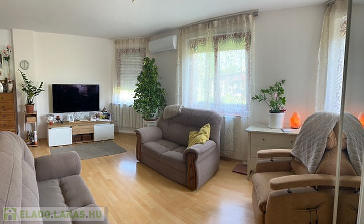 Amerikai konyhás nappali, 3 szoba, fürdőszoba és kamra áll rendelkezésre. A lakás 2022-benn fel lett újítva, ekkor új gázkazánt szereltek fel, fém redőnyős műanyag hőszigetelt nyílászárókat és klíma berendezéseket. A burkolatok minden helyiségben újszerű állapotúak. A konyhabútor a vételár részét képezi.