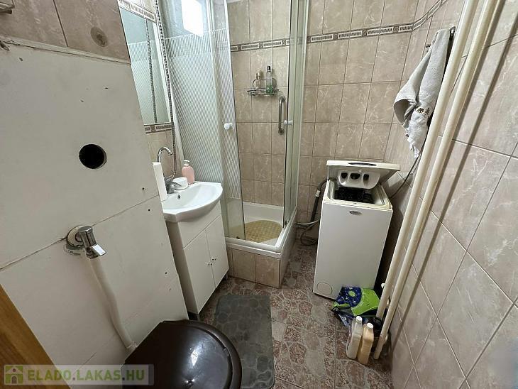 Fürdőszoba zuhanyzós és WC-vel felszerelt, használható, igény szerint könnyen felújítható.